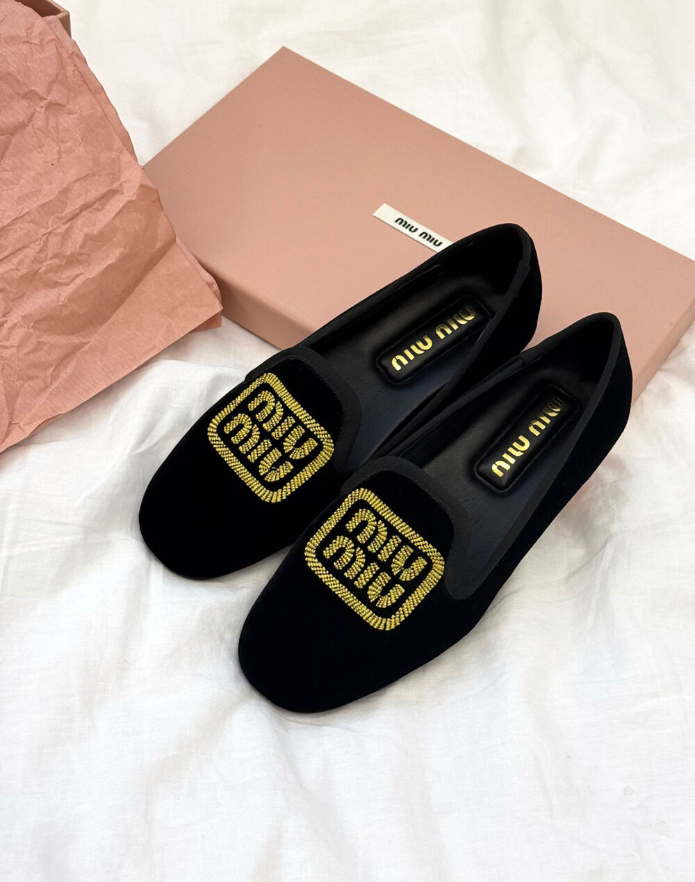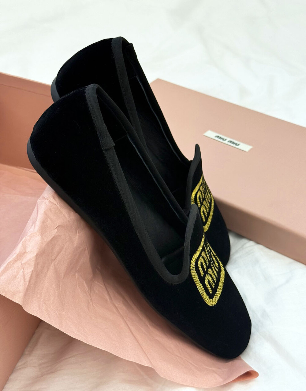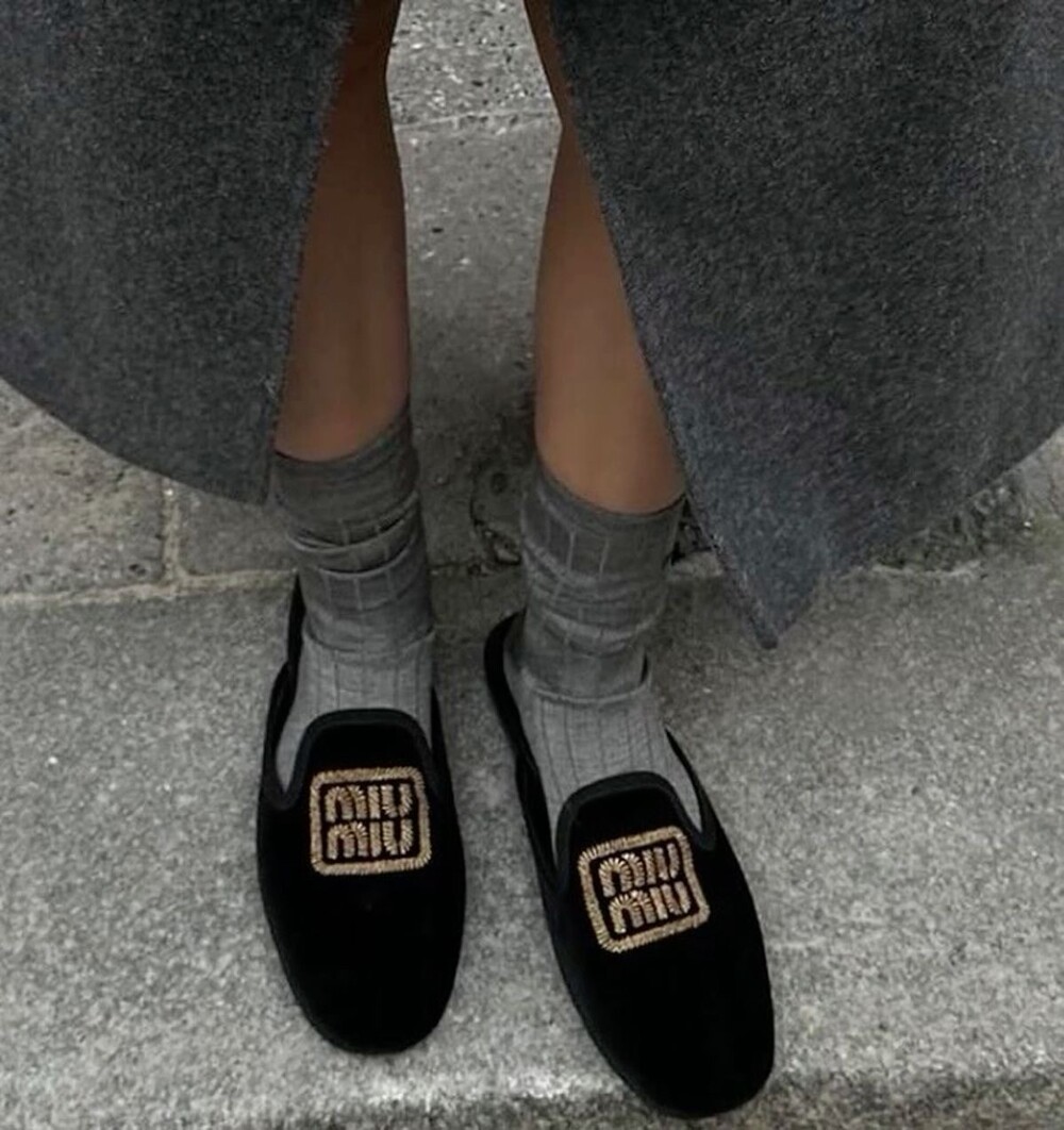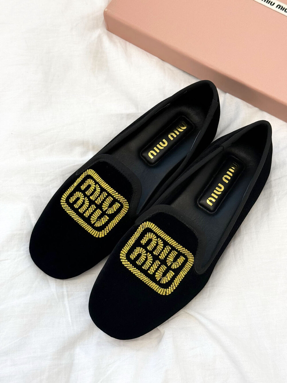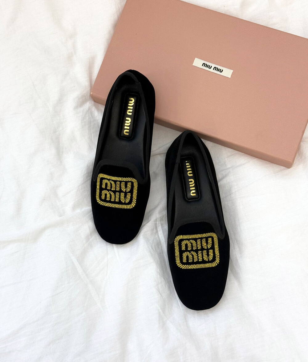 miu벨벳 자수 슬립온+풀박스