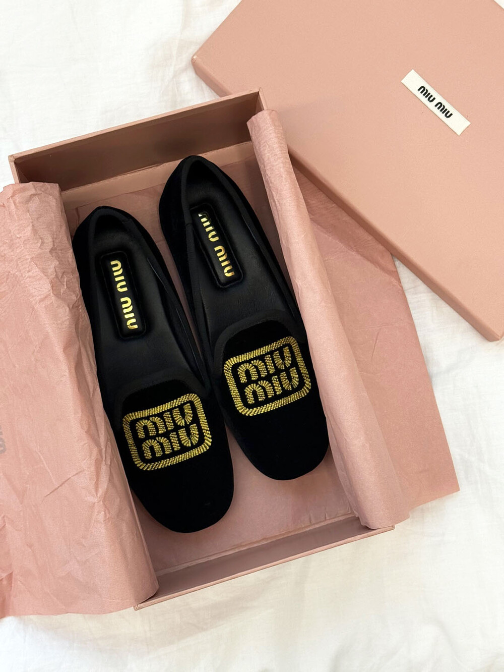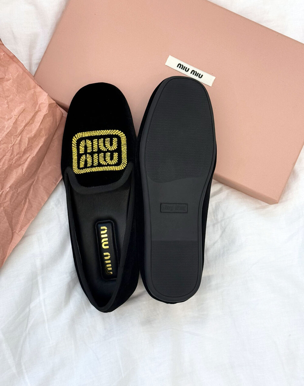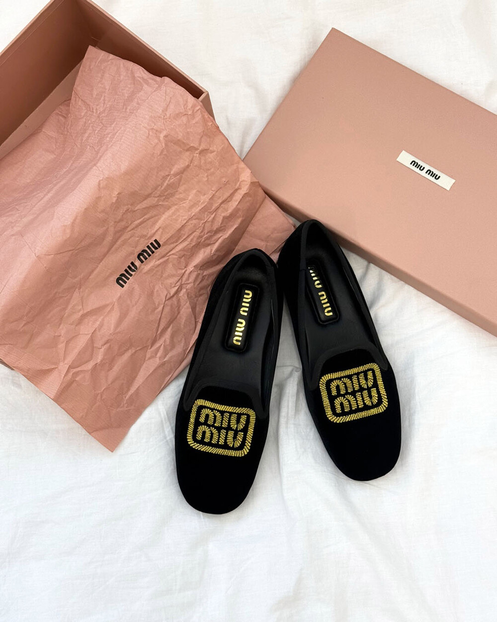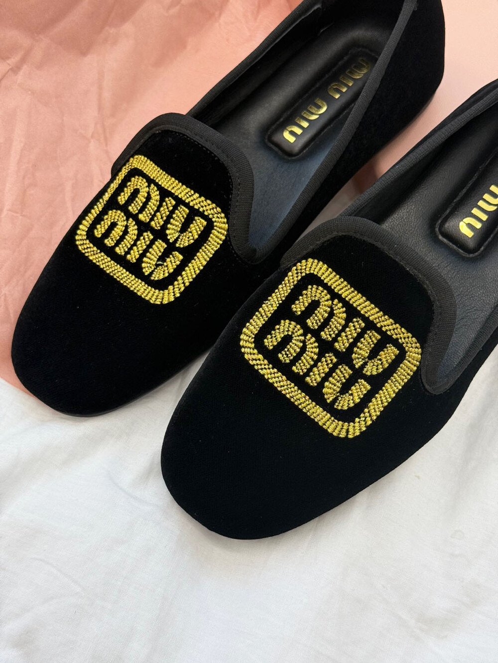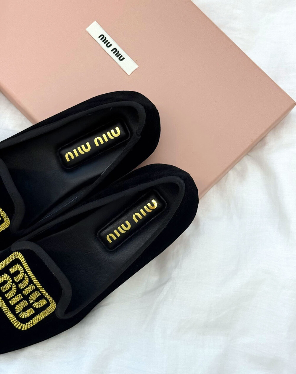 miu벨벳 자수 슬립온+풀박스