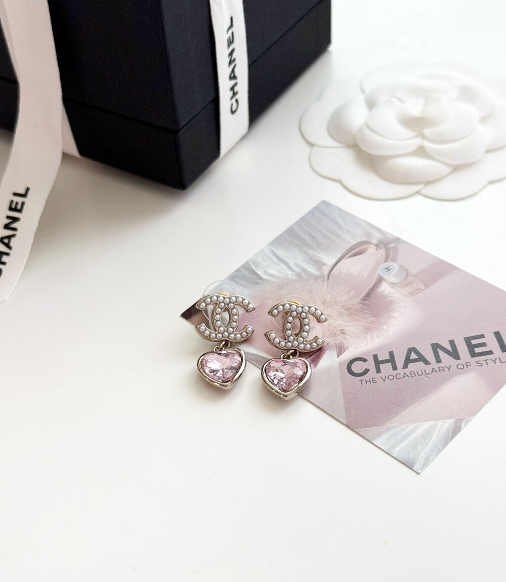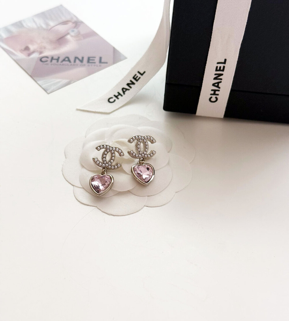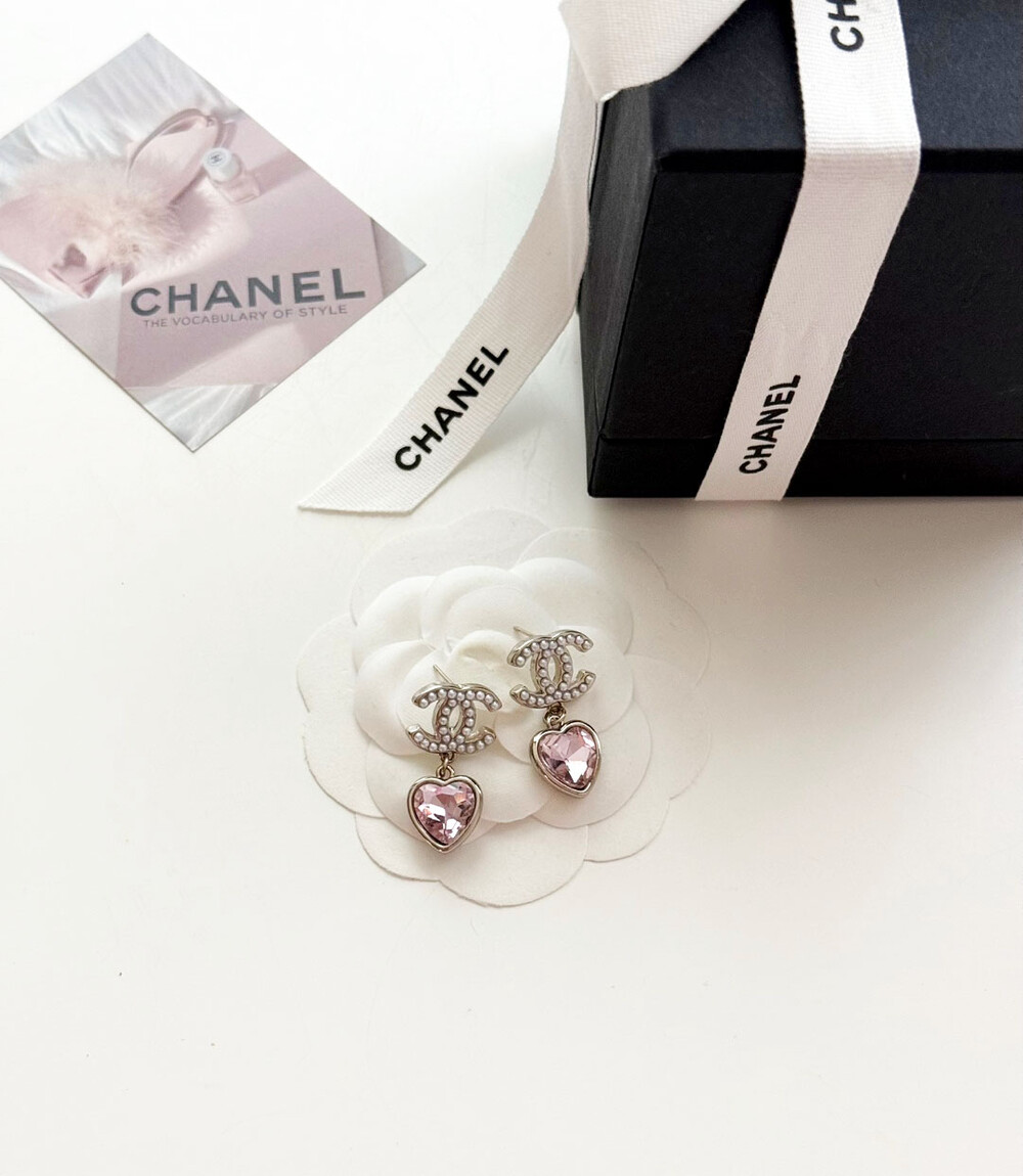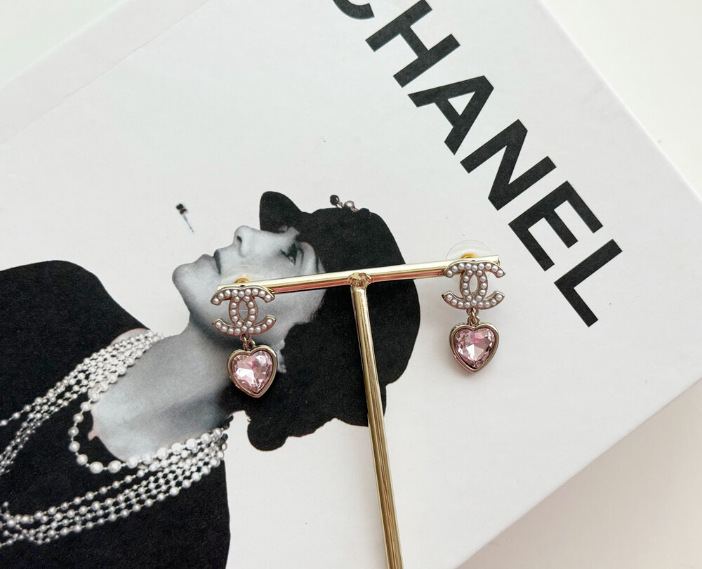 cc진주 피치 하트 이어링