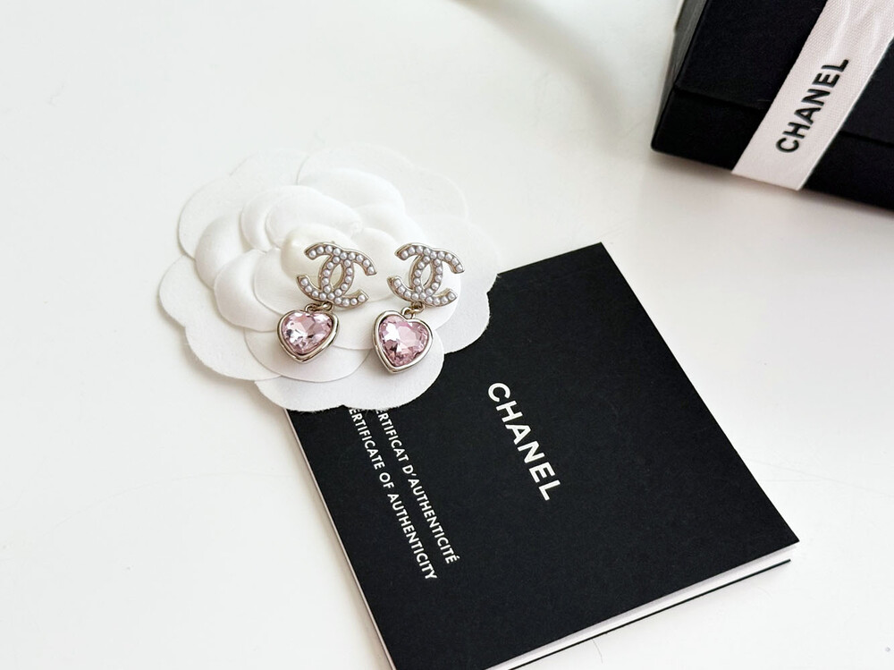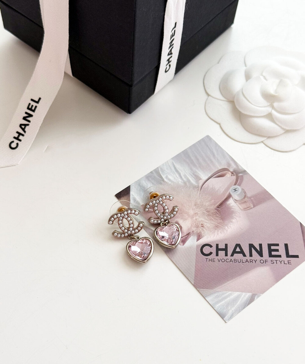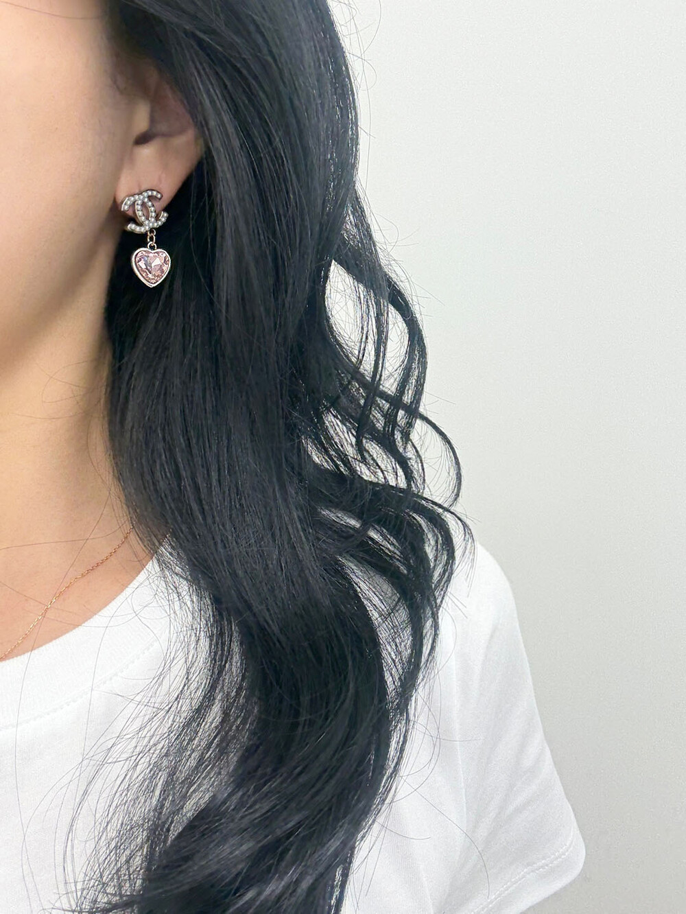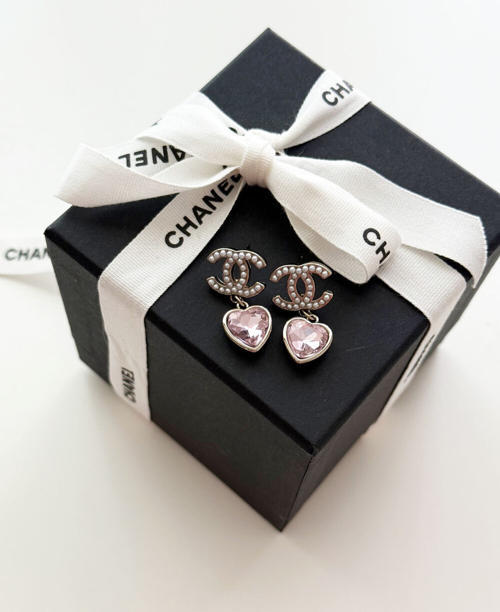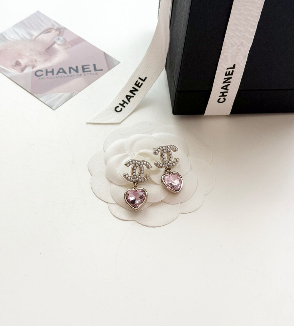 cc진주 피치 하트 이어링