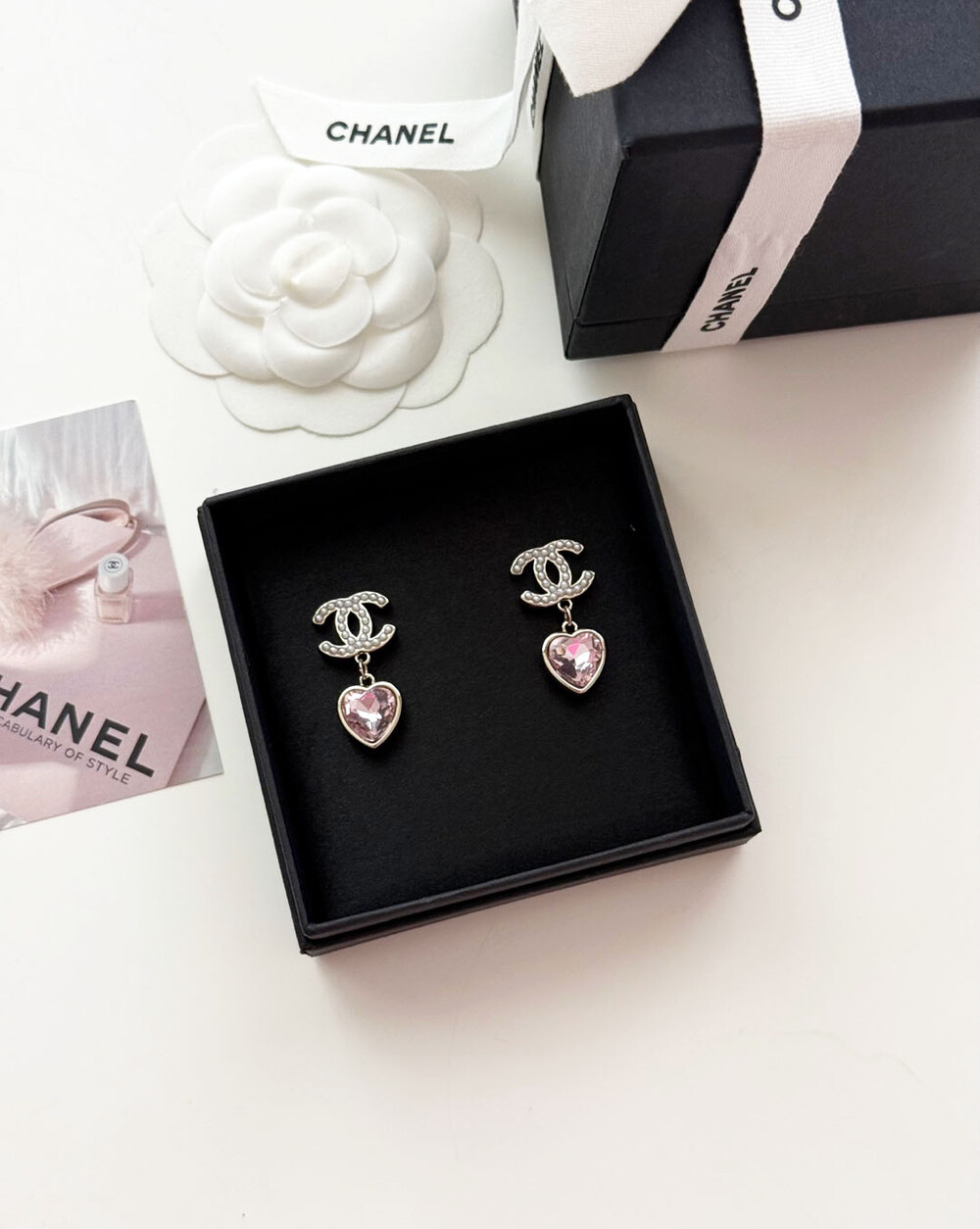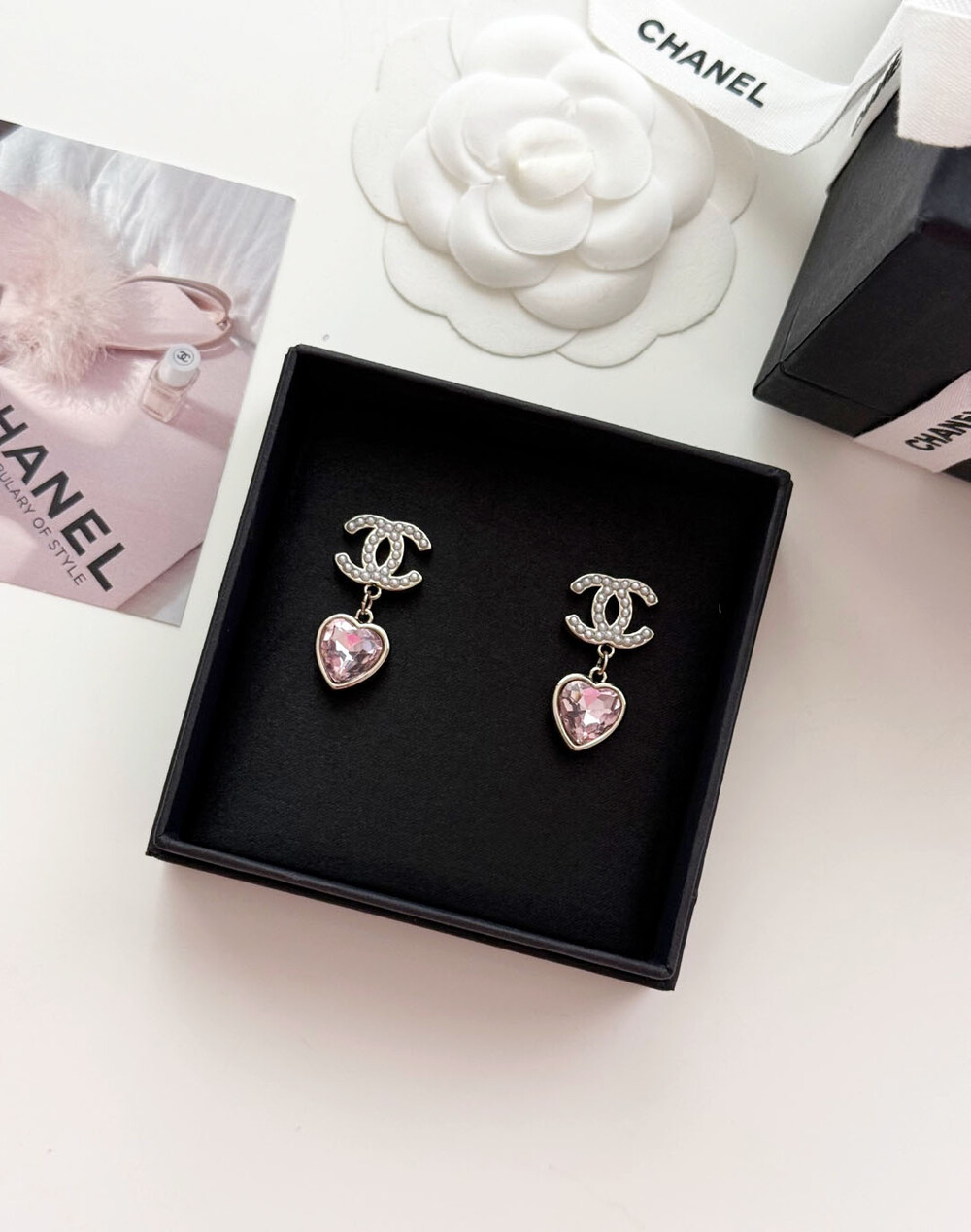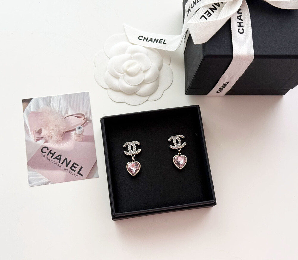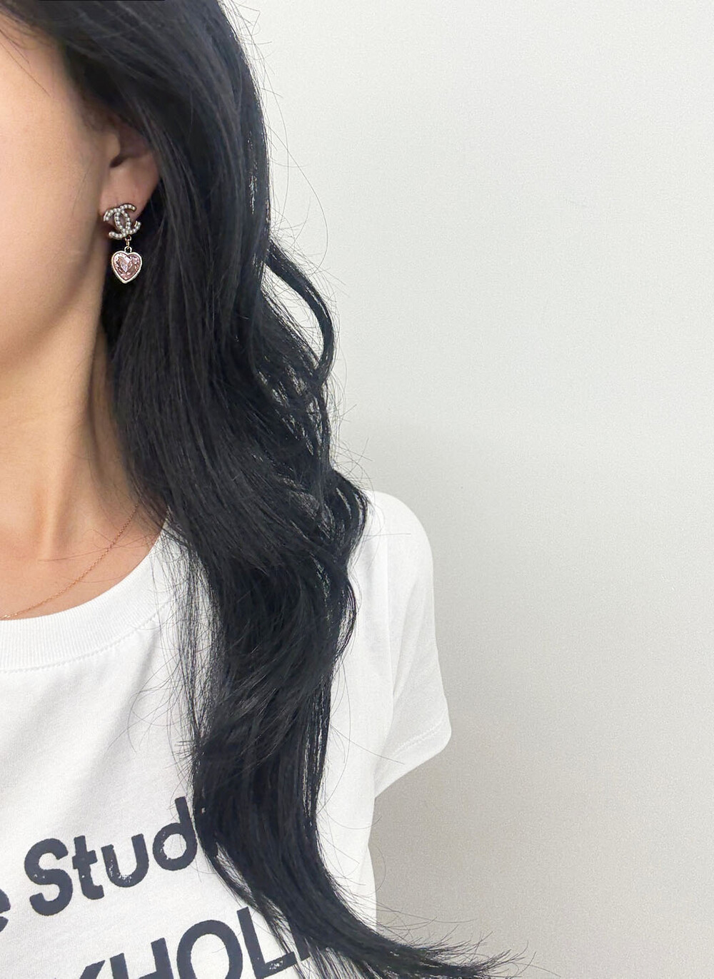 cc진주 피치 하트 이어링