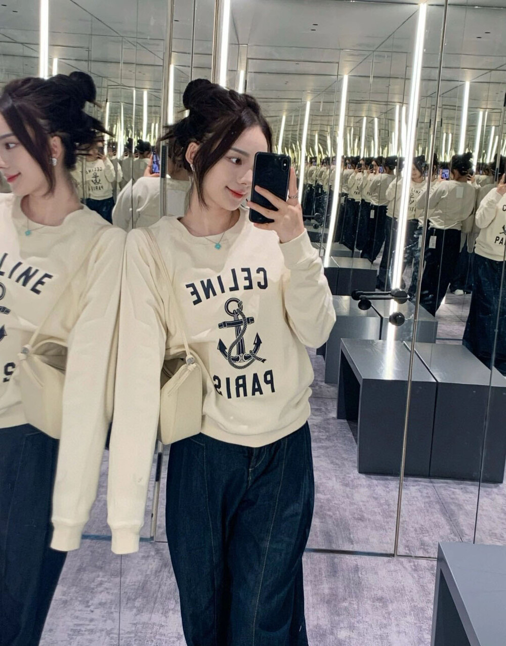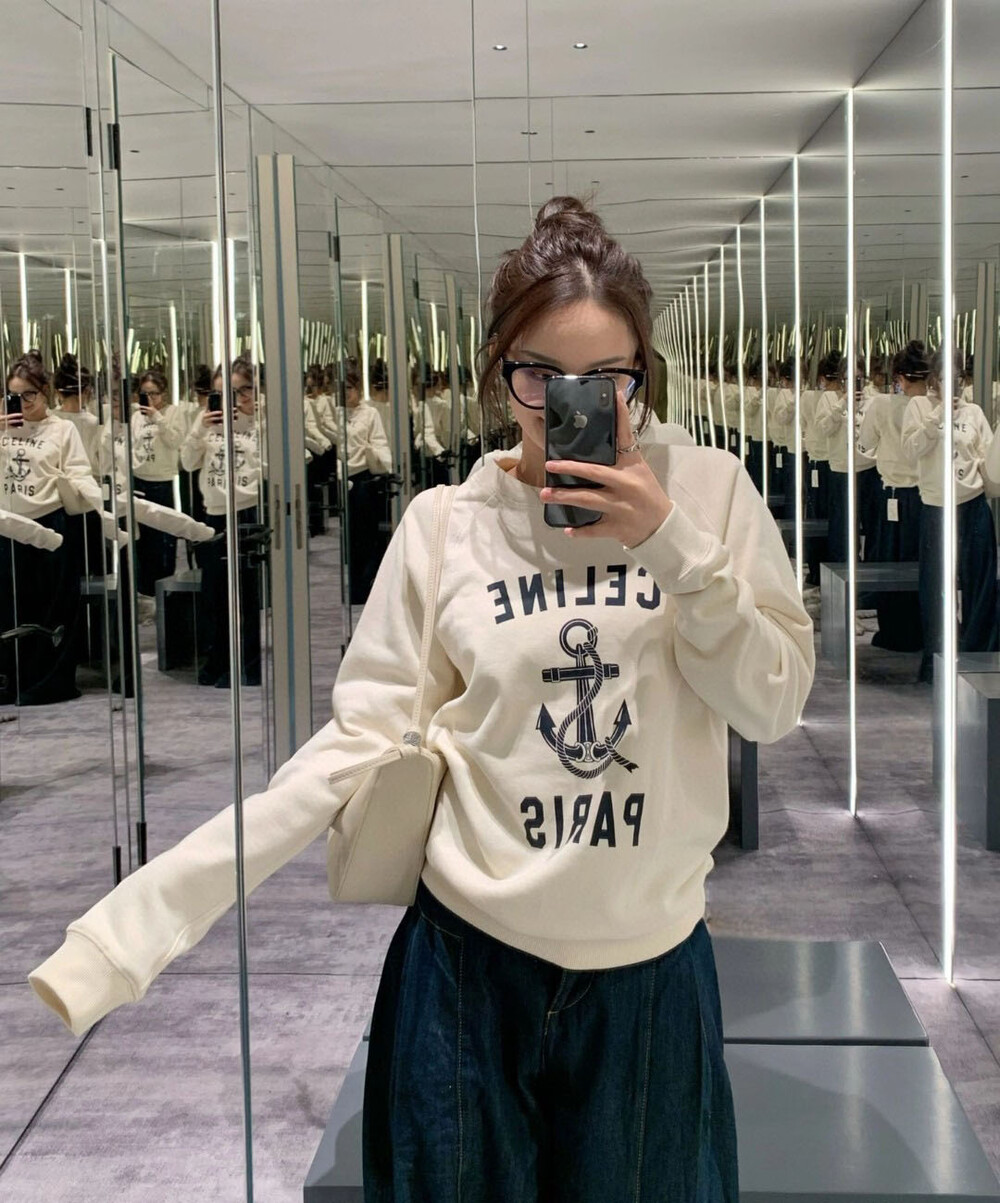 살짝 루즈하게 떨어지는 낙낙한 핏의 맨투맨이에요:)