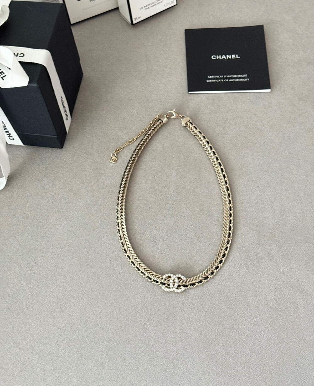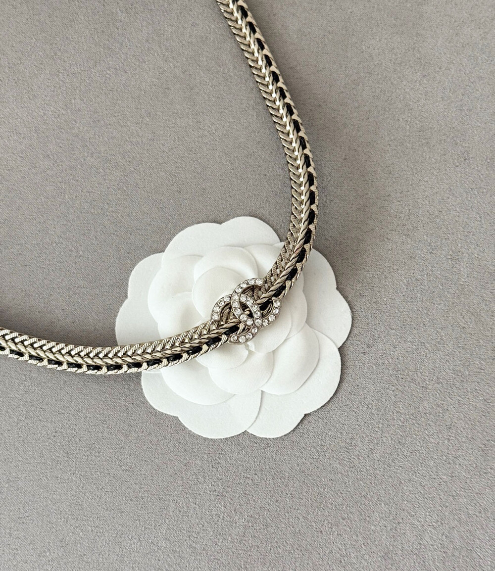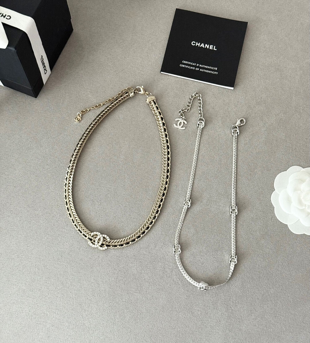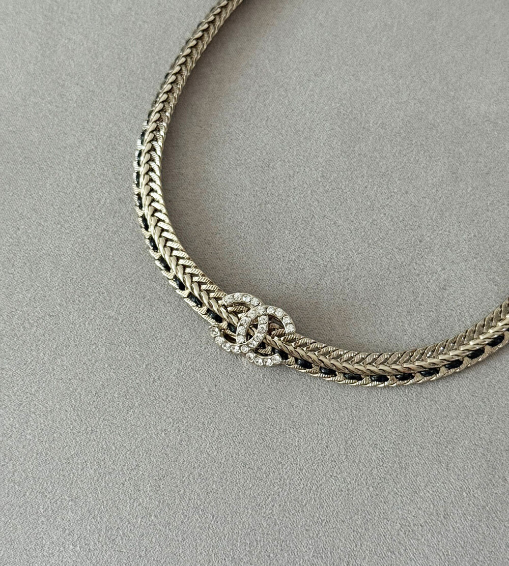 cc스네이크 더블 체인 레일 로고 네크리스