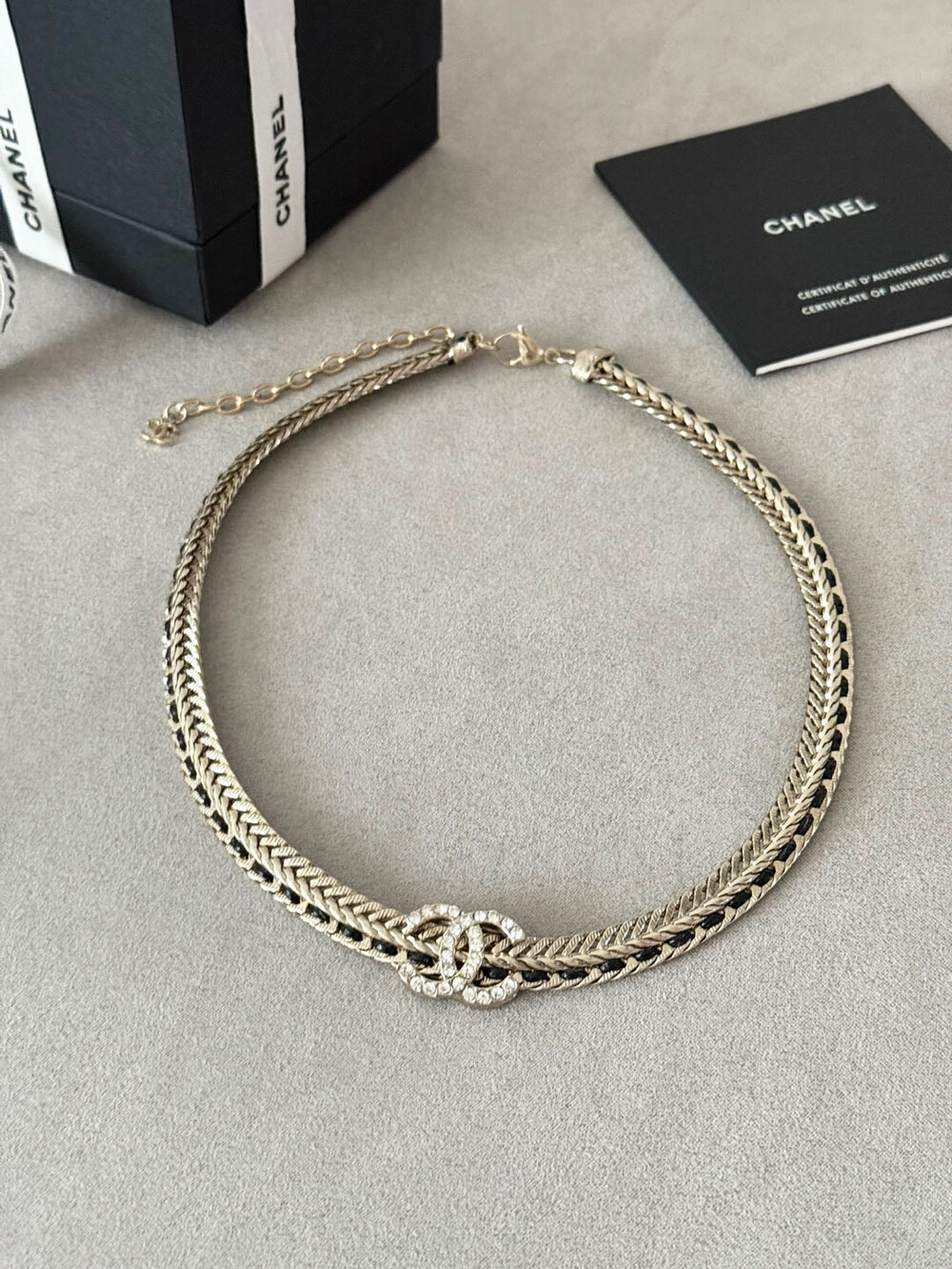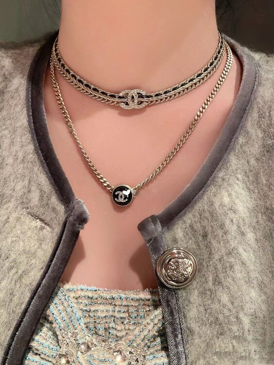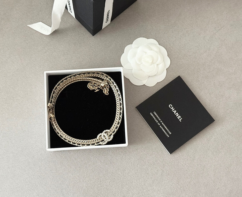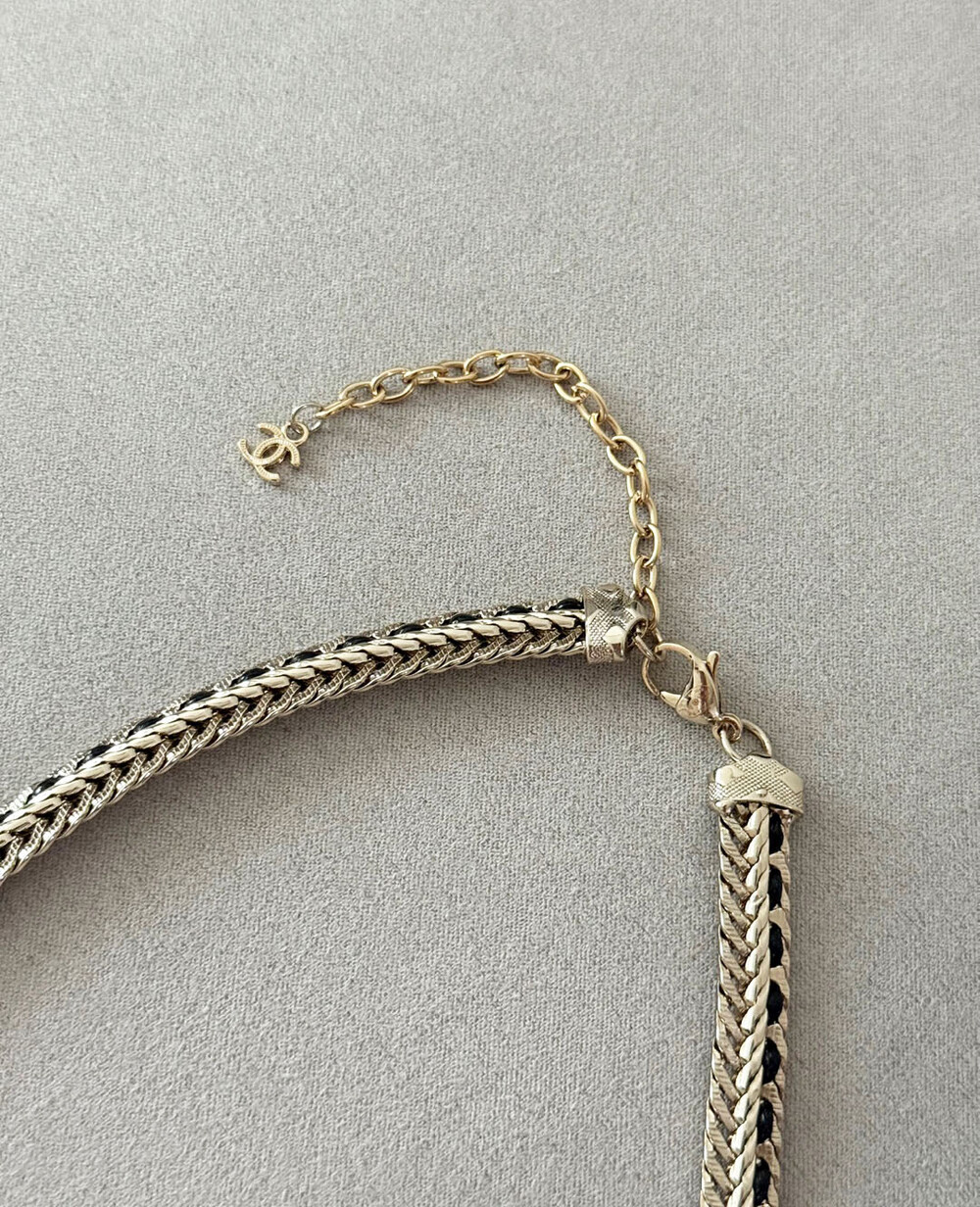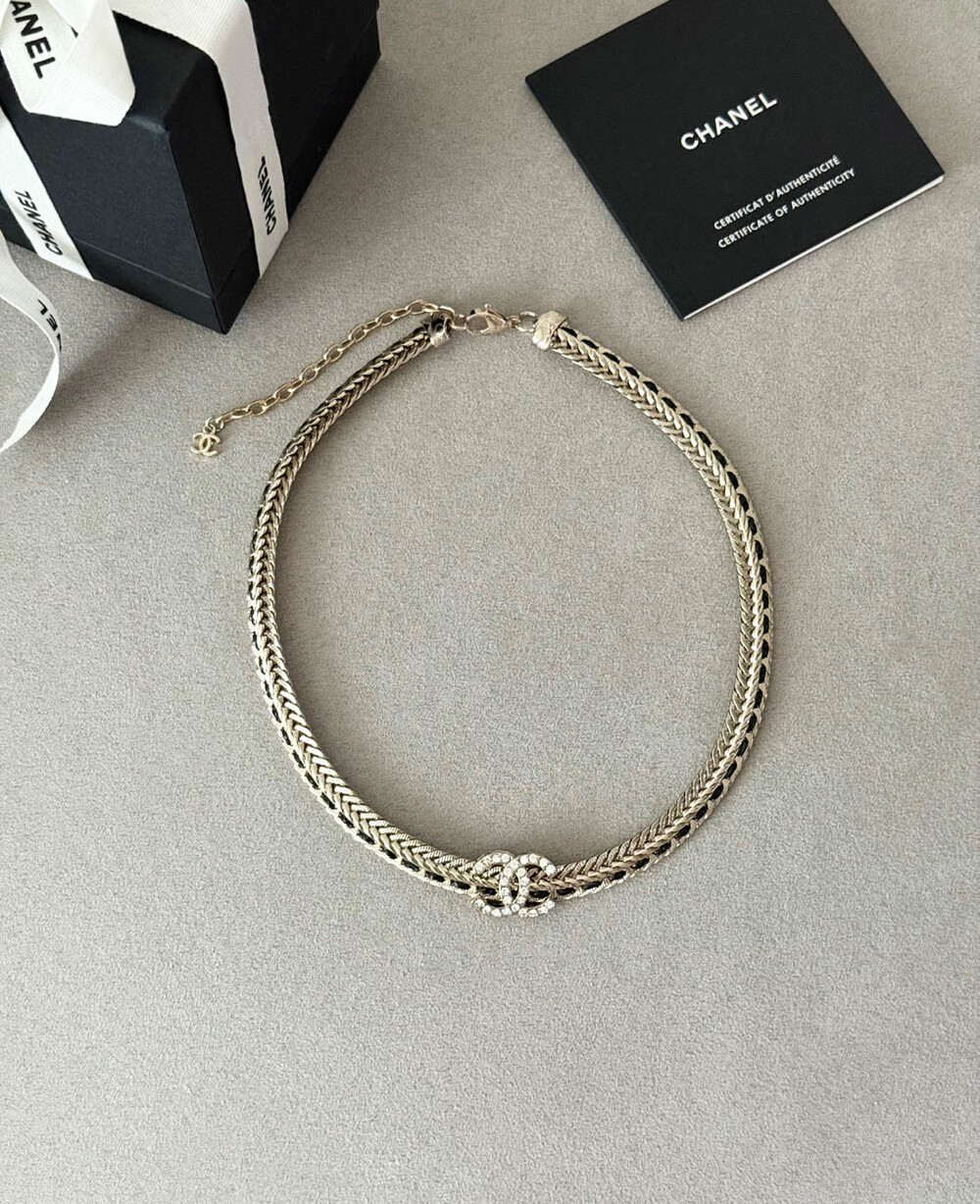 cc스네이크 더블 체인 레일 로고 네크리스