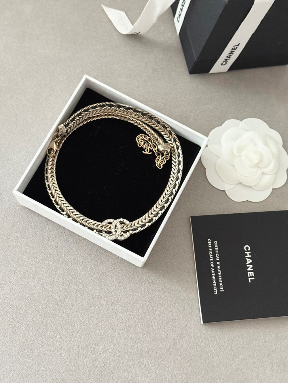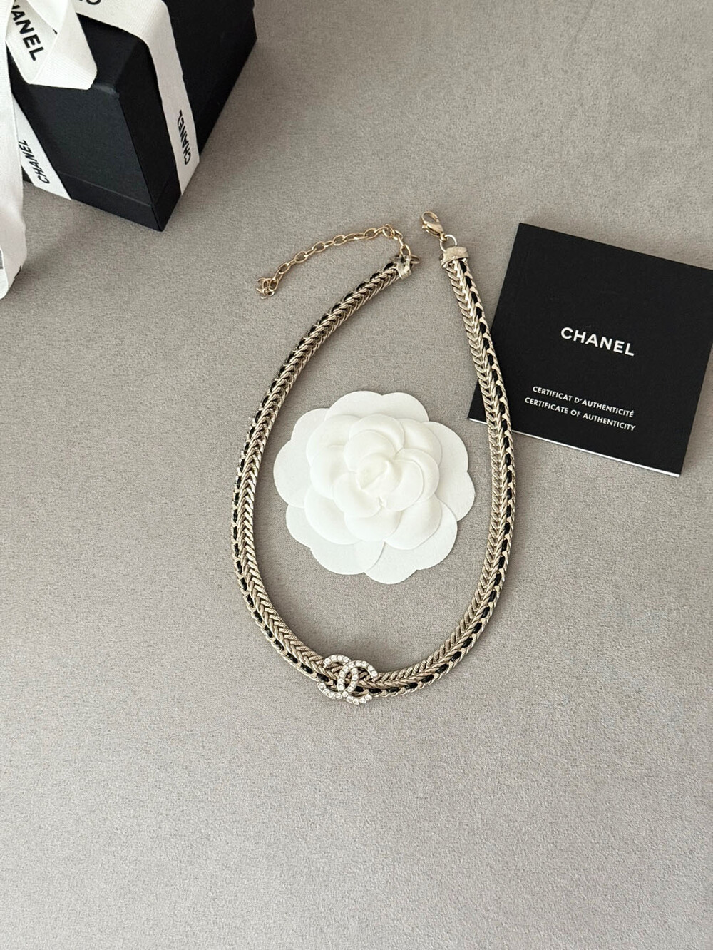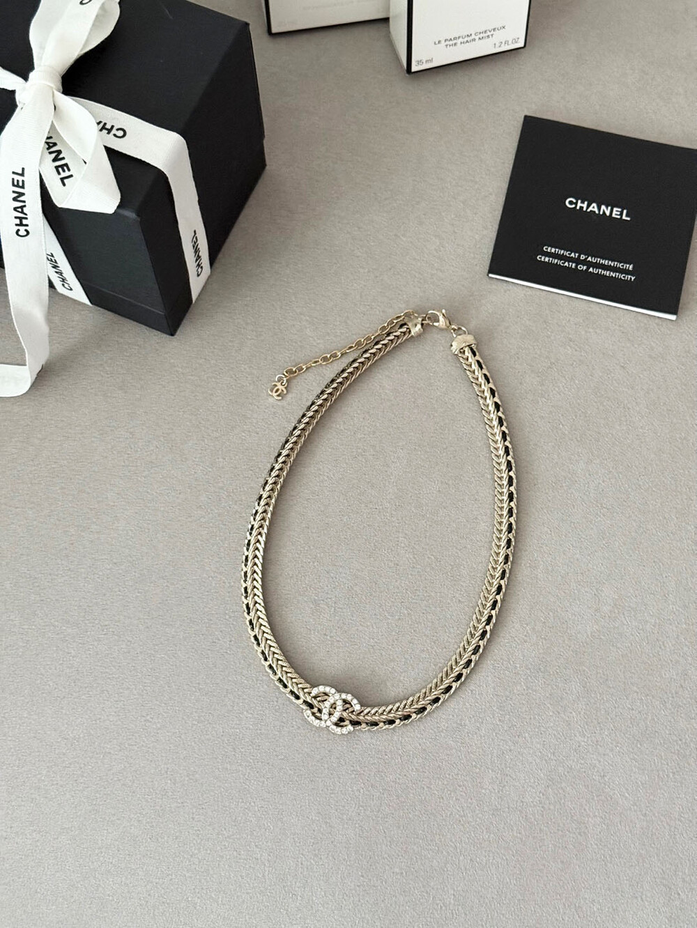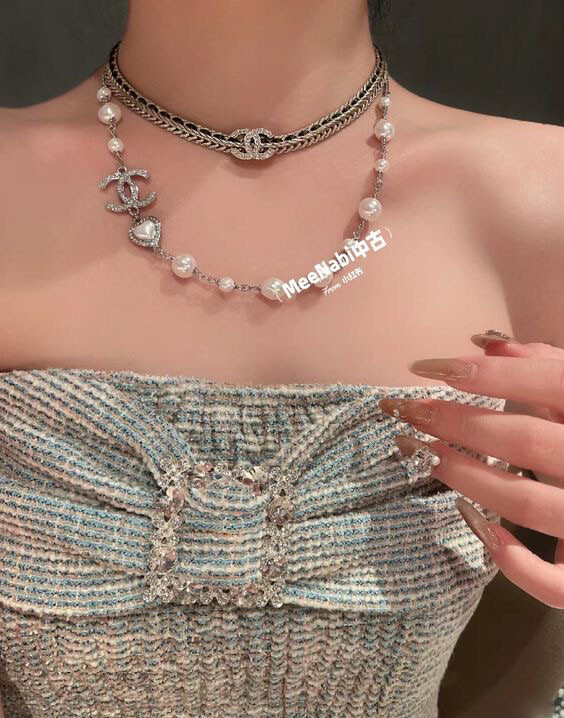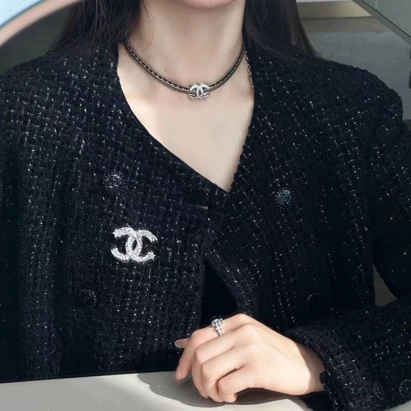 cc스네이크 더블 체인 레일 로고 네크리스