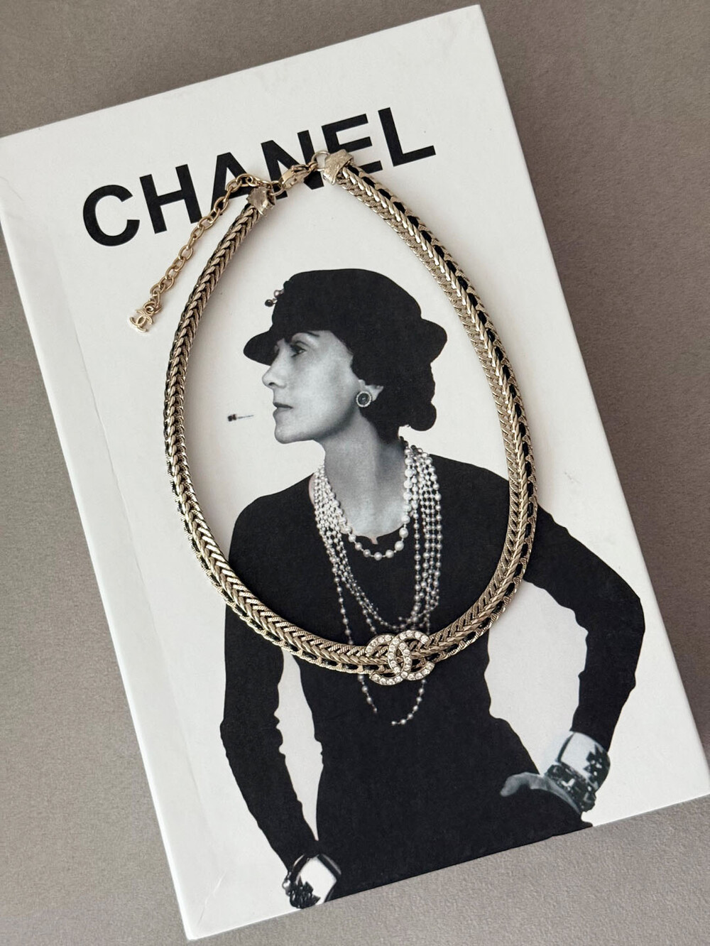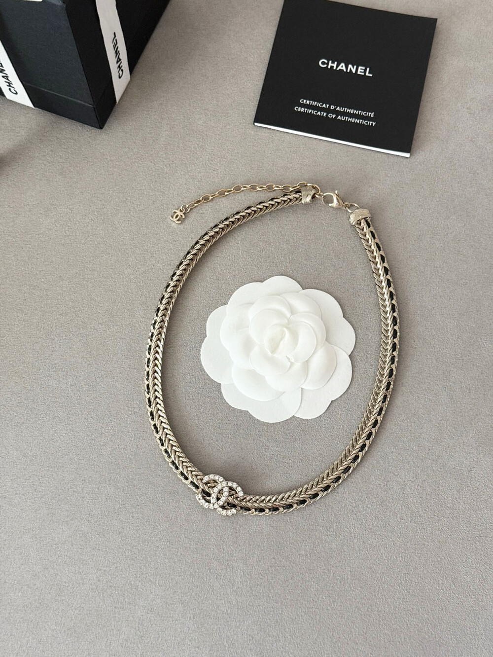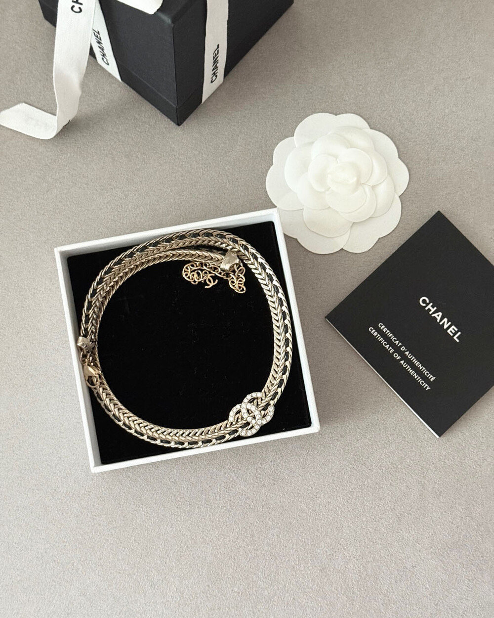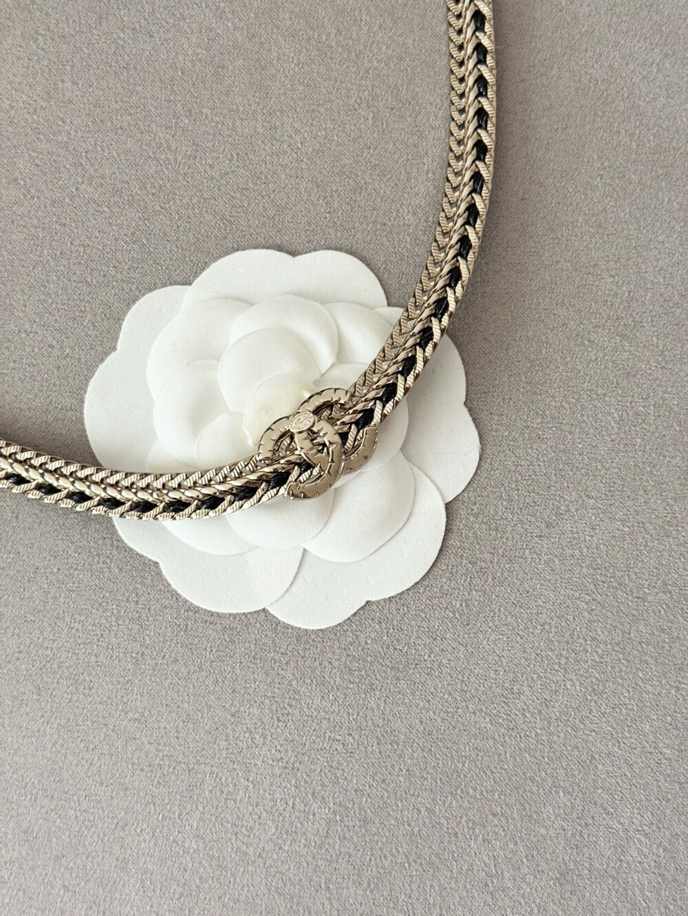 cc스네이크 더블 체인 레일 로고 네크리스