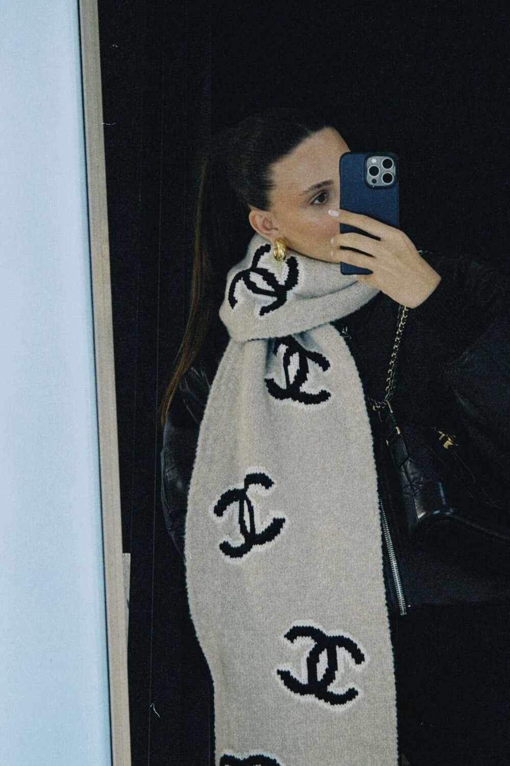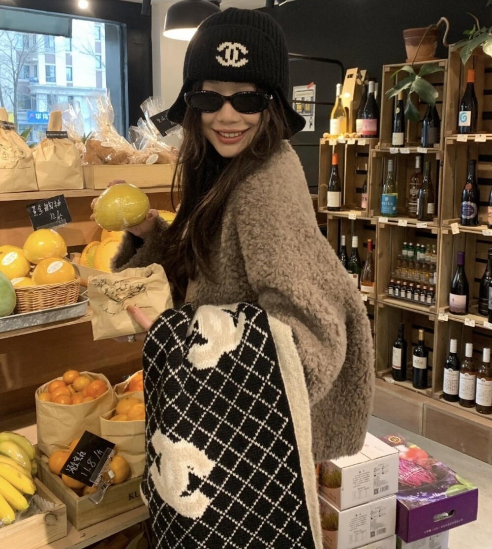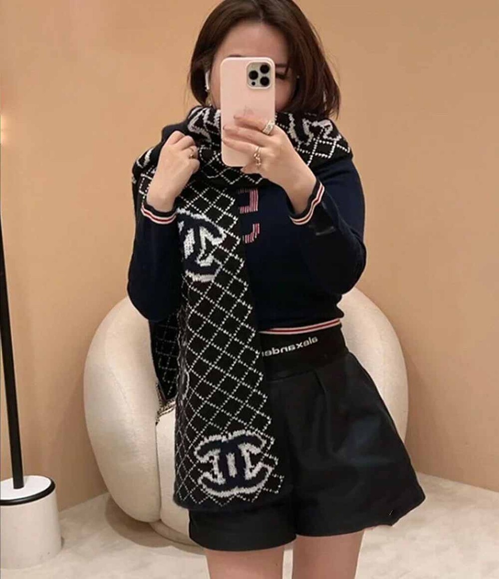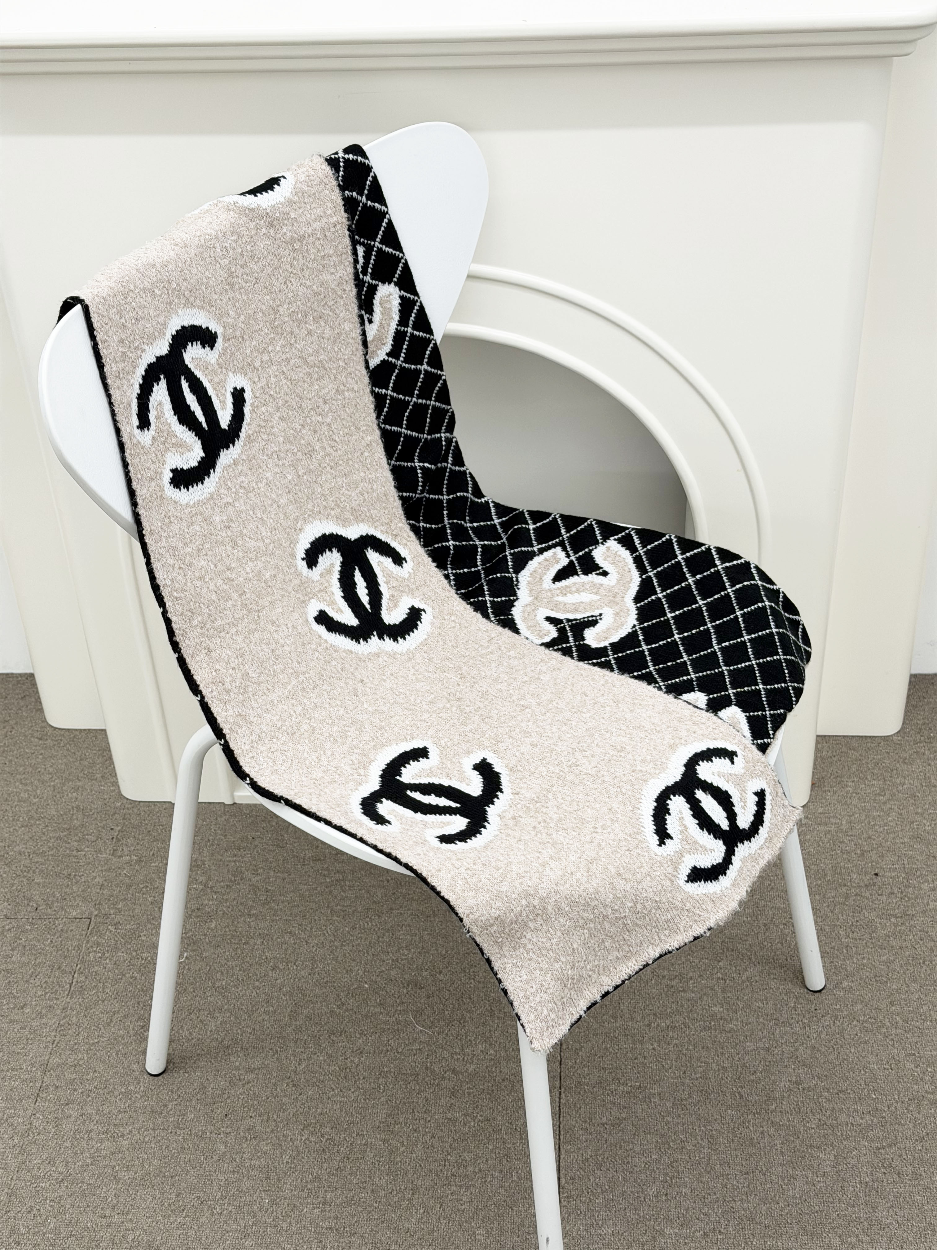 cc퀼팅 빅로고 양면 캐시미어 머플러