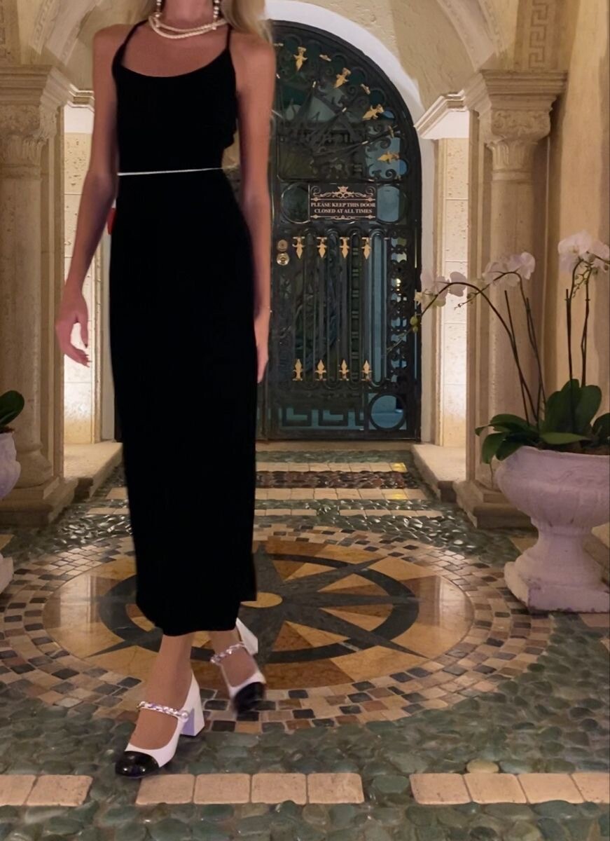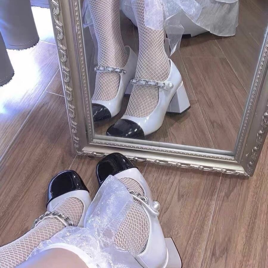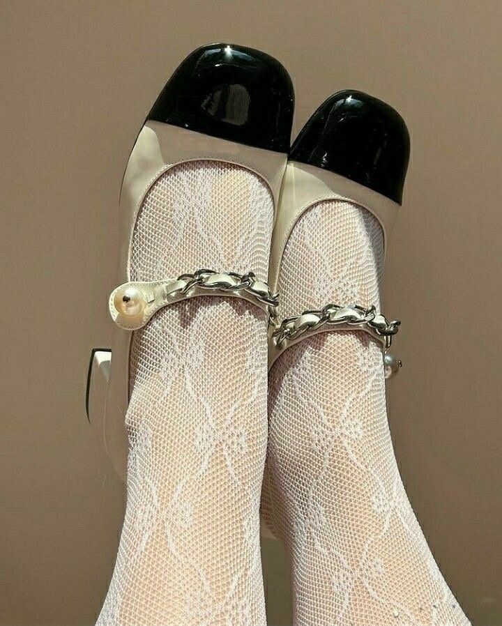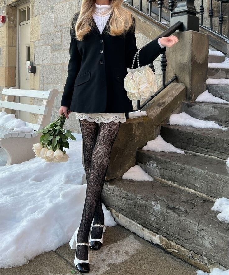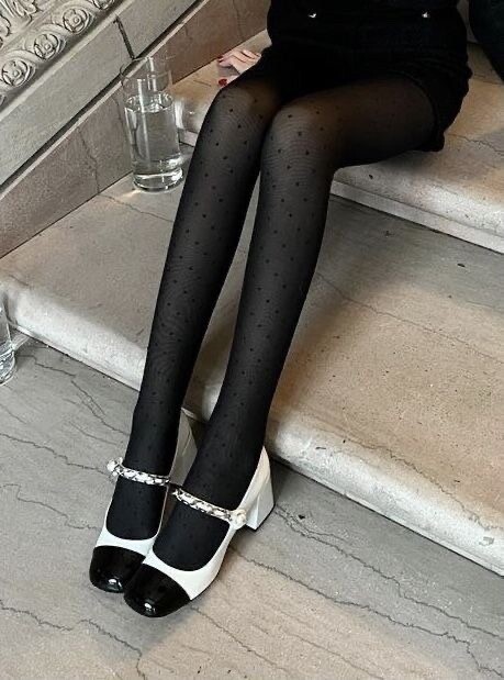 블랙&화이트의 모던한 배색으로 삭스나 스타킹코디에