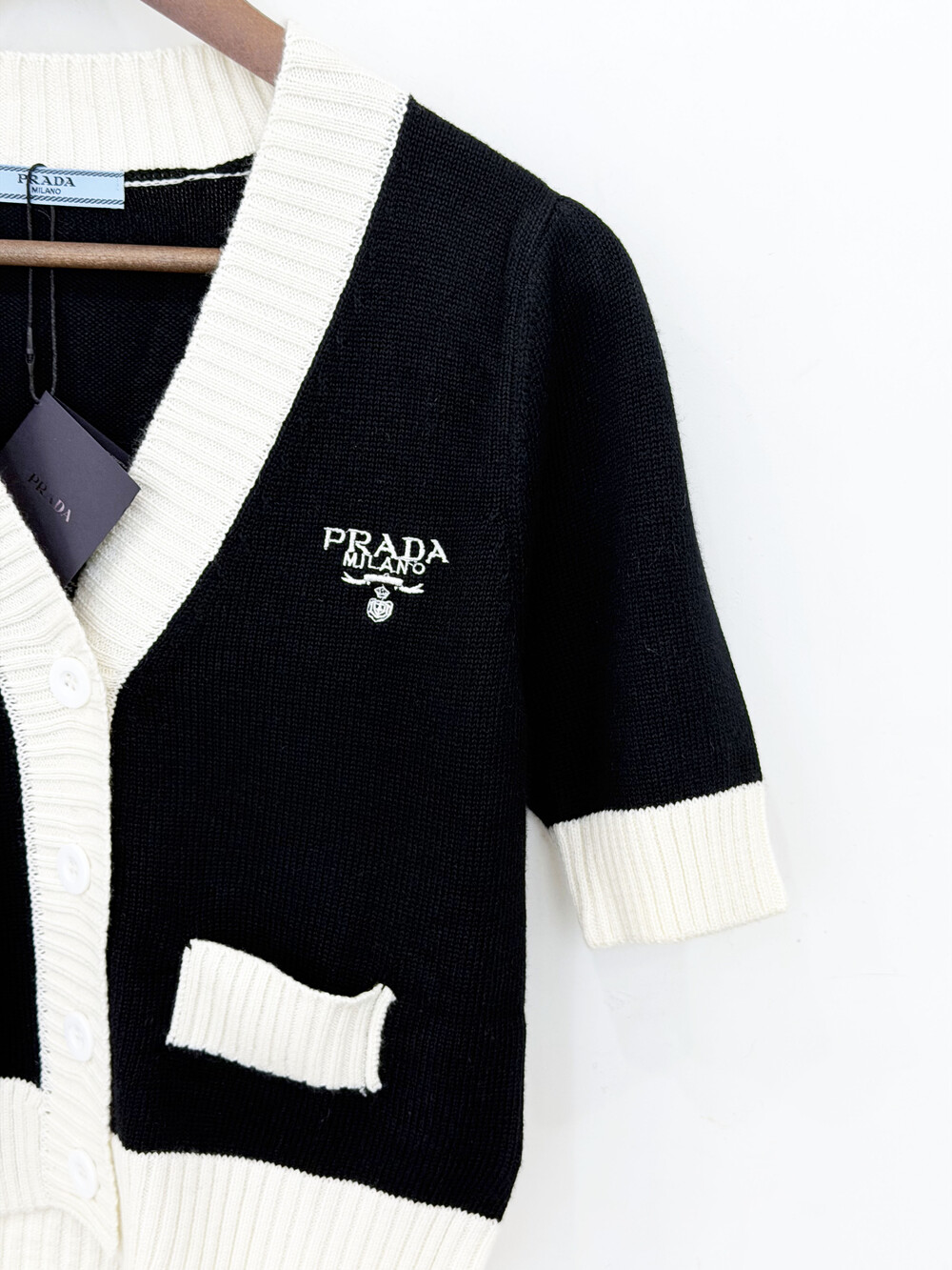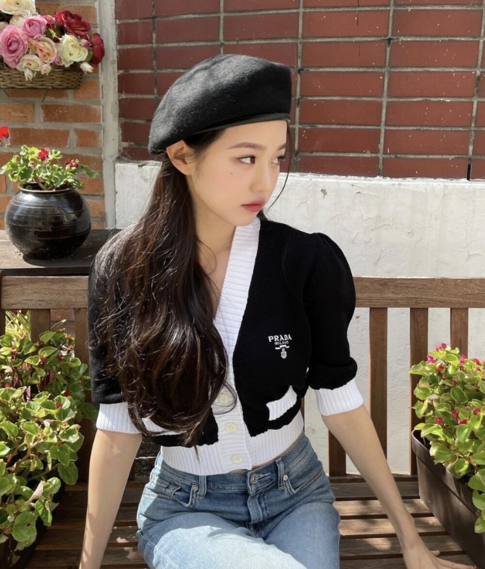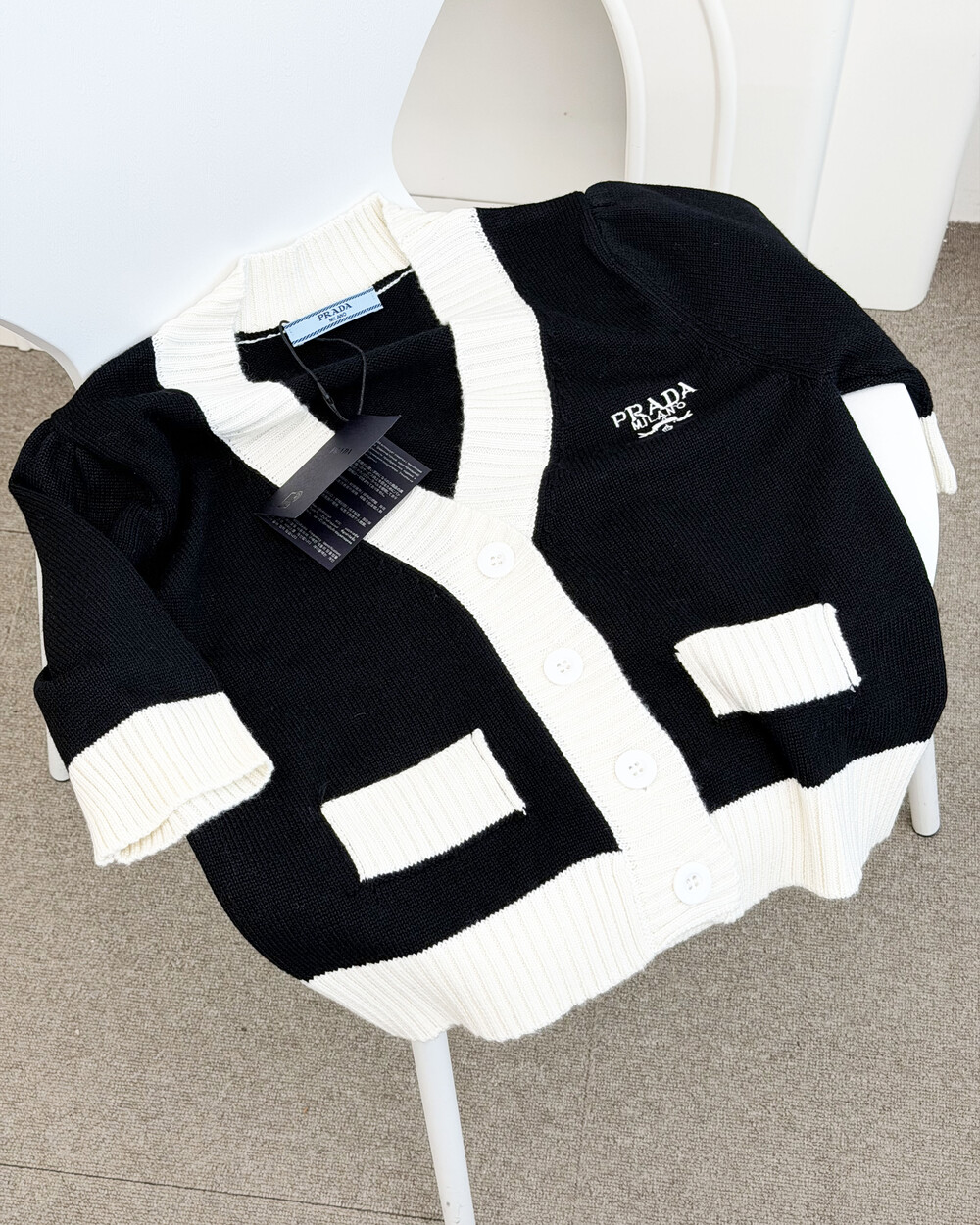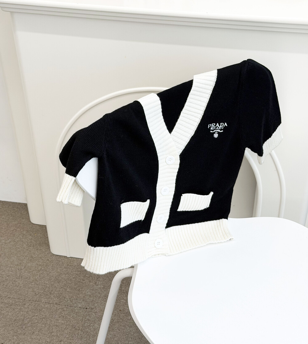 pra배색 크롭 가디건
