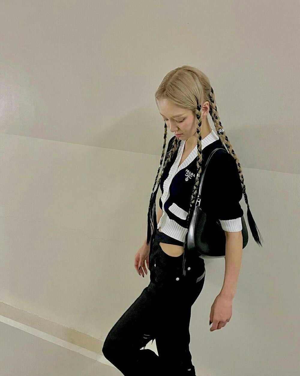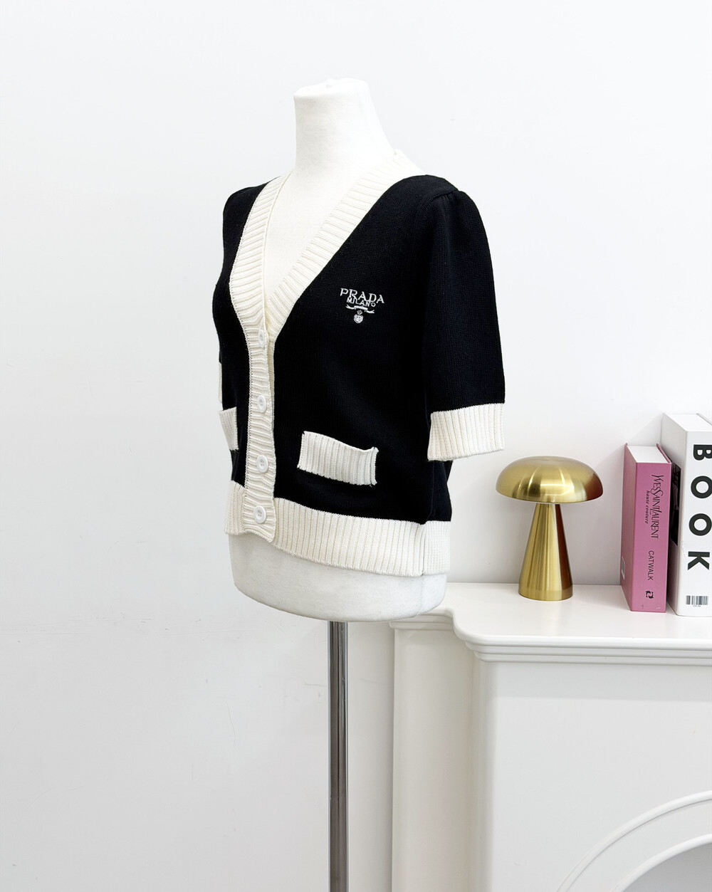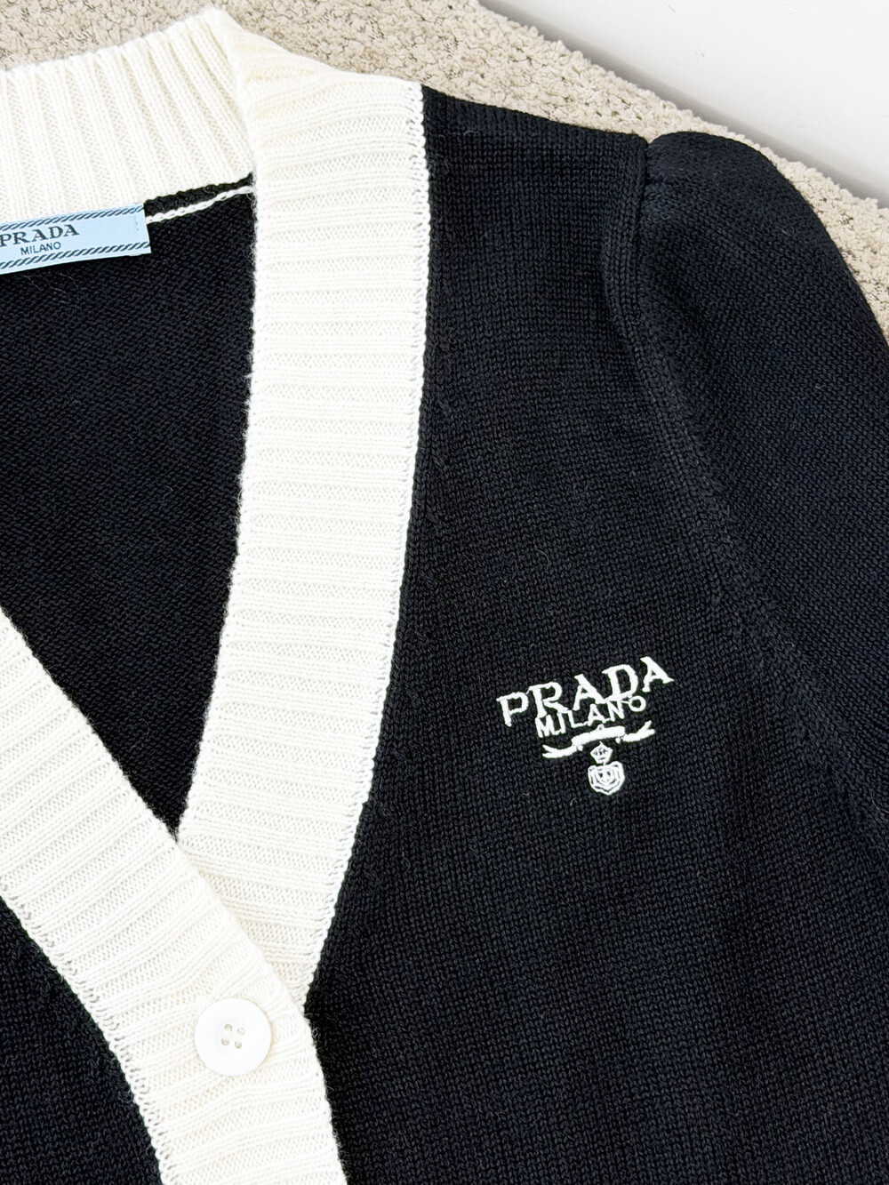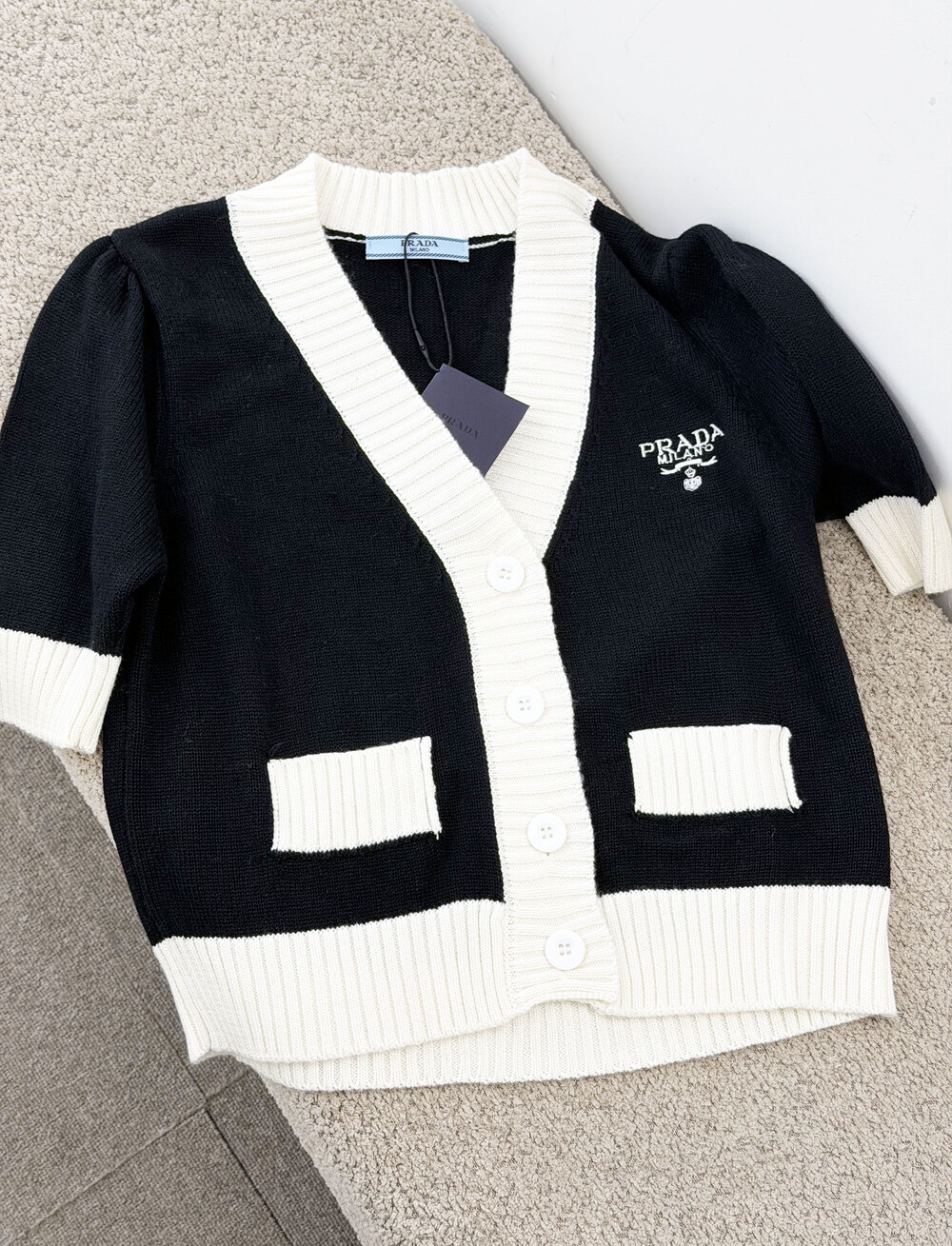 pra배색 크롭 가디건