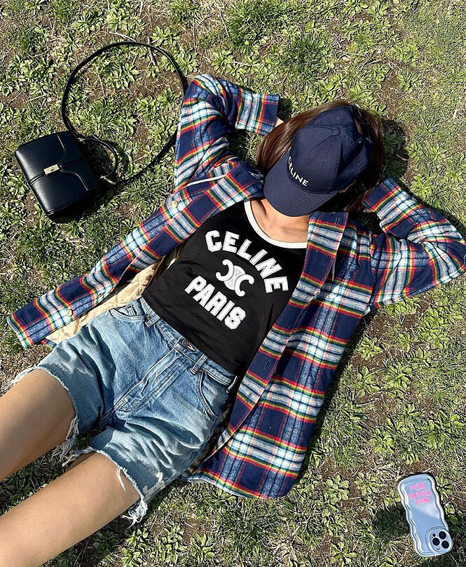 로고 프린팅에 배꼽 위로 올라오는 크롭 탑입니다:)