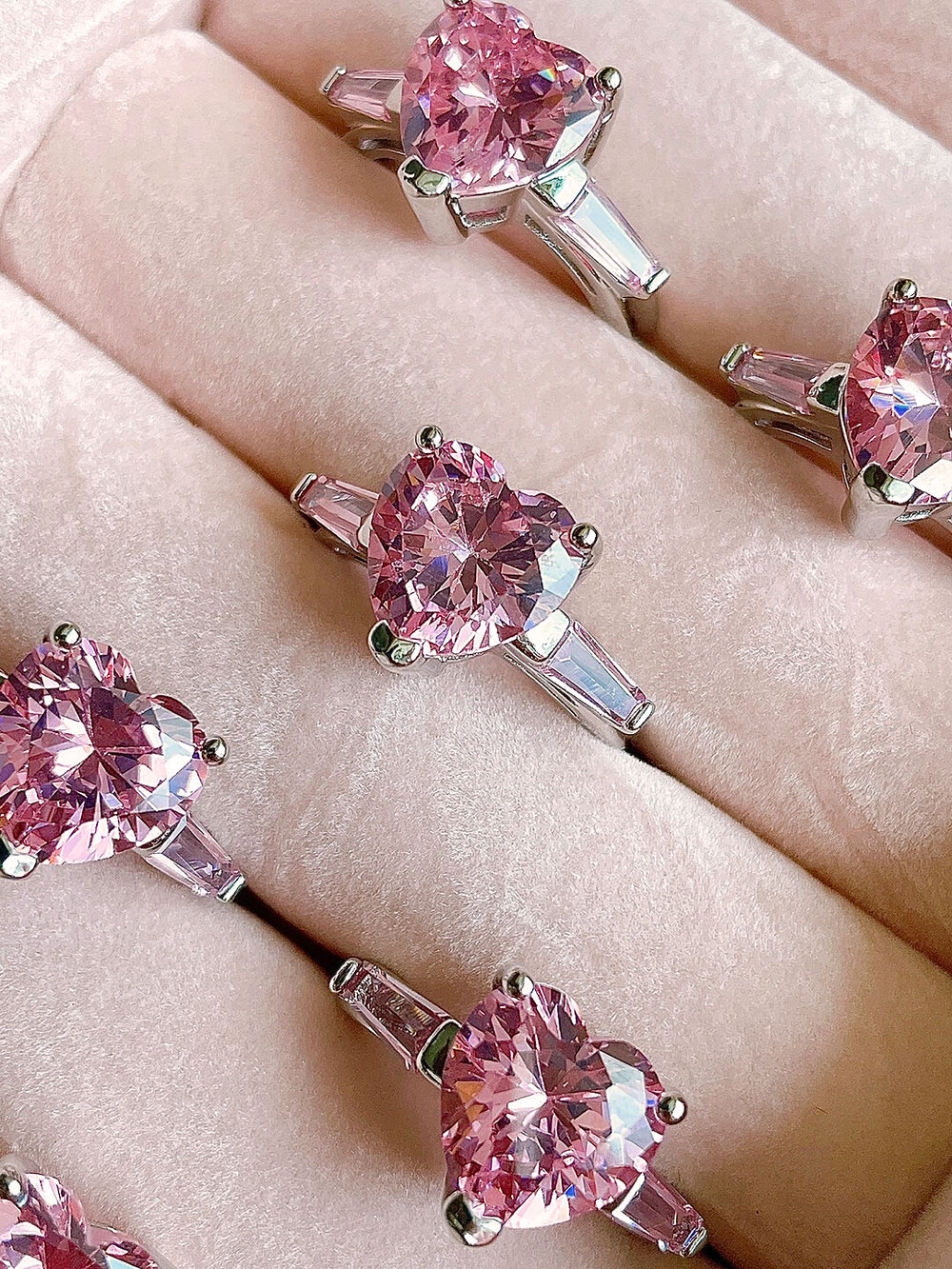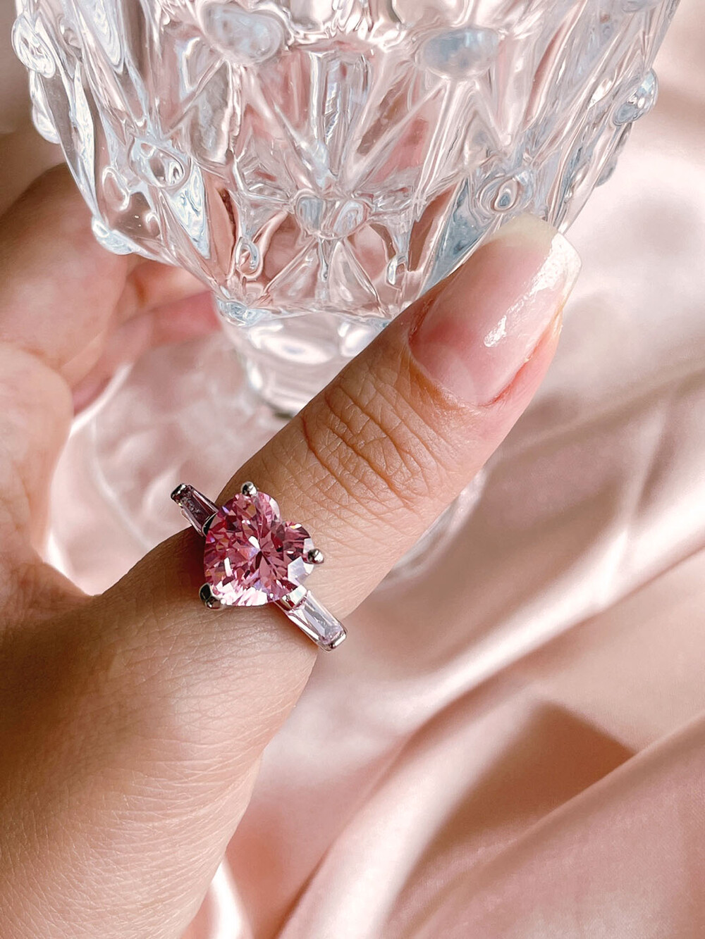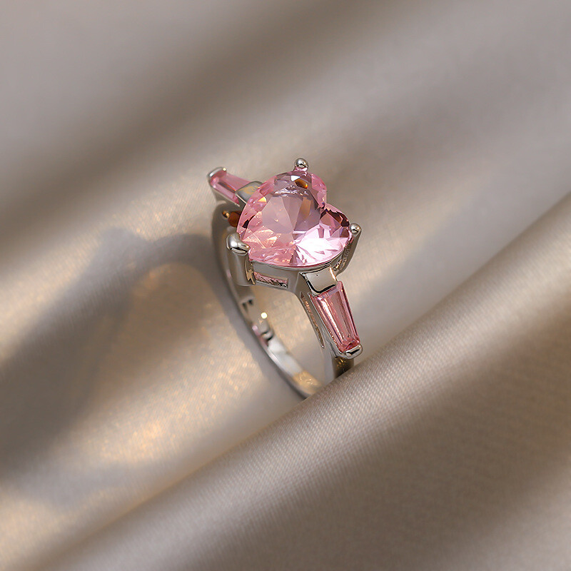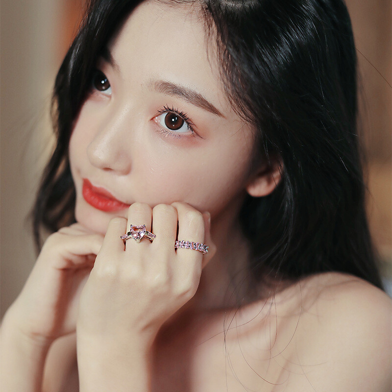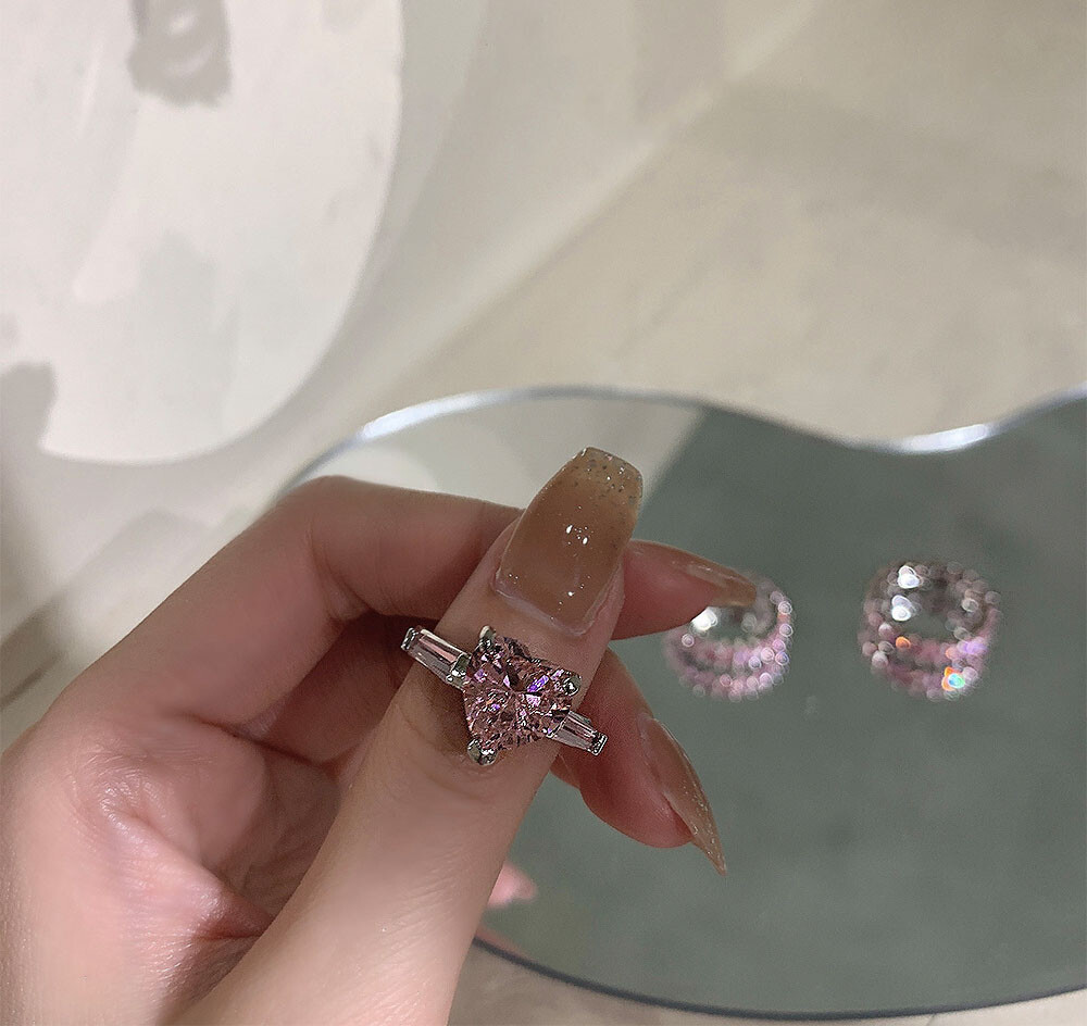 실버925 핑크다이아 하트링