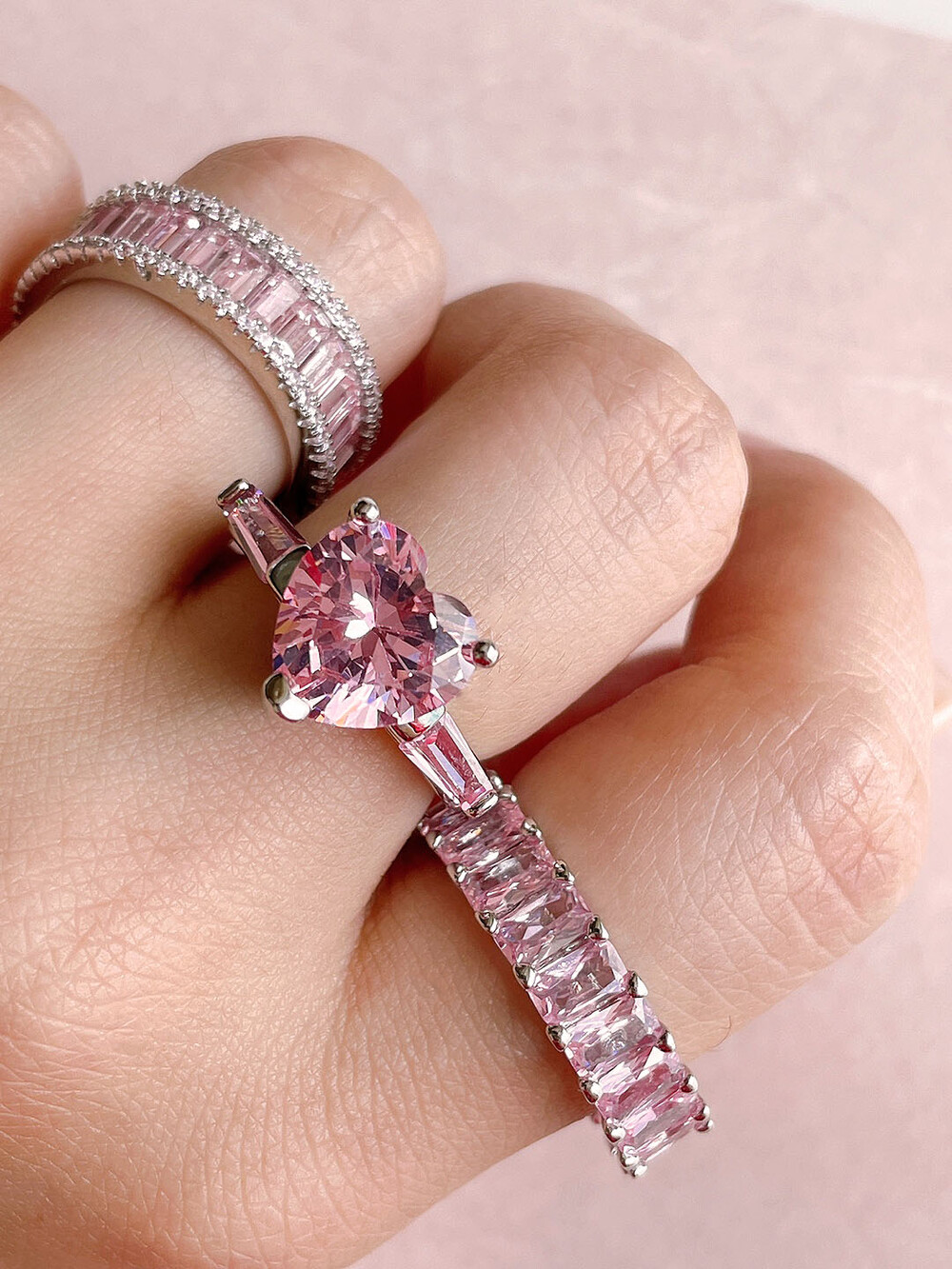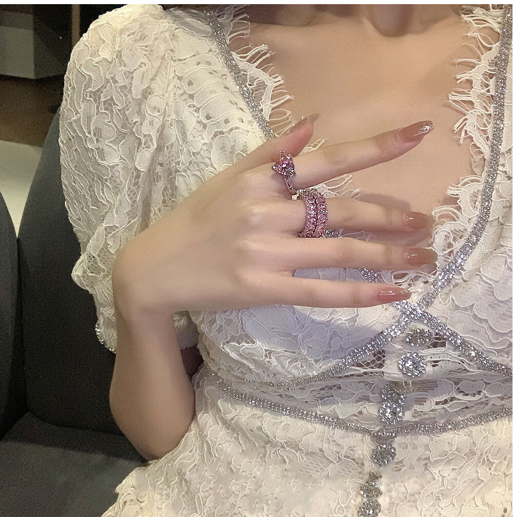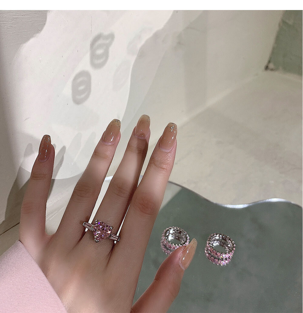 실버925 핑크 다이아 하트링