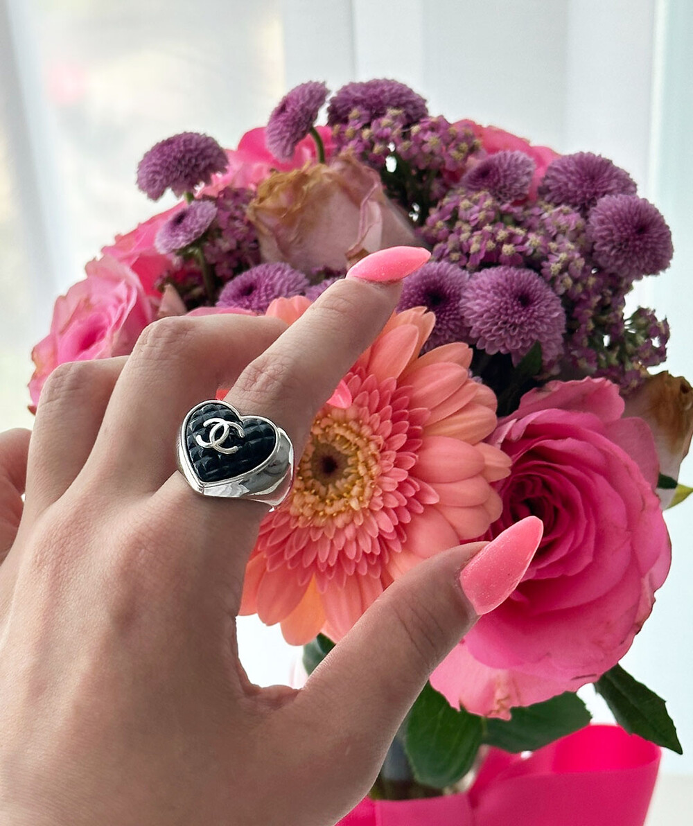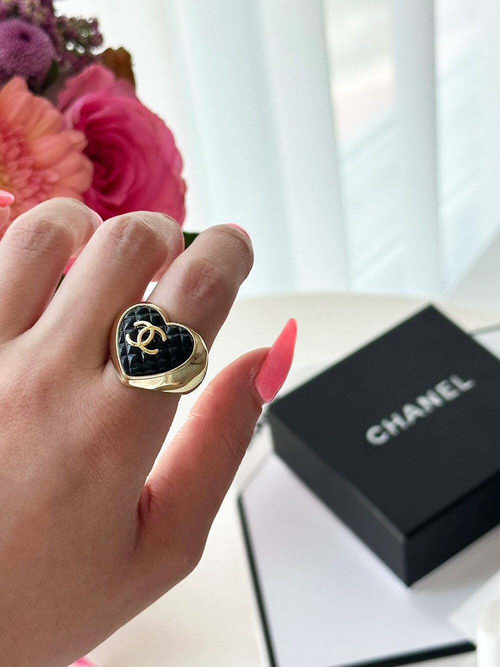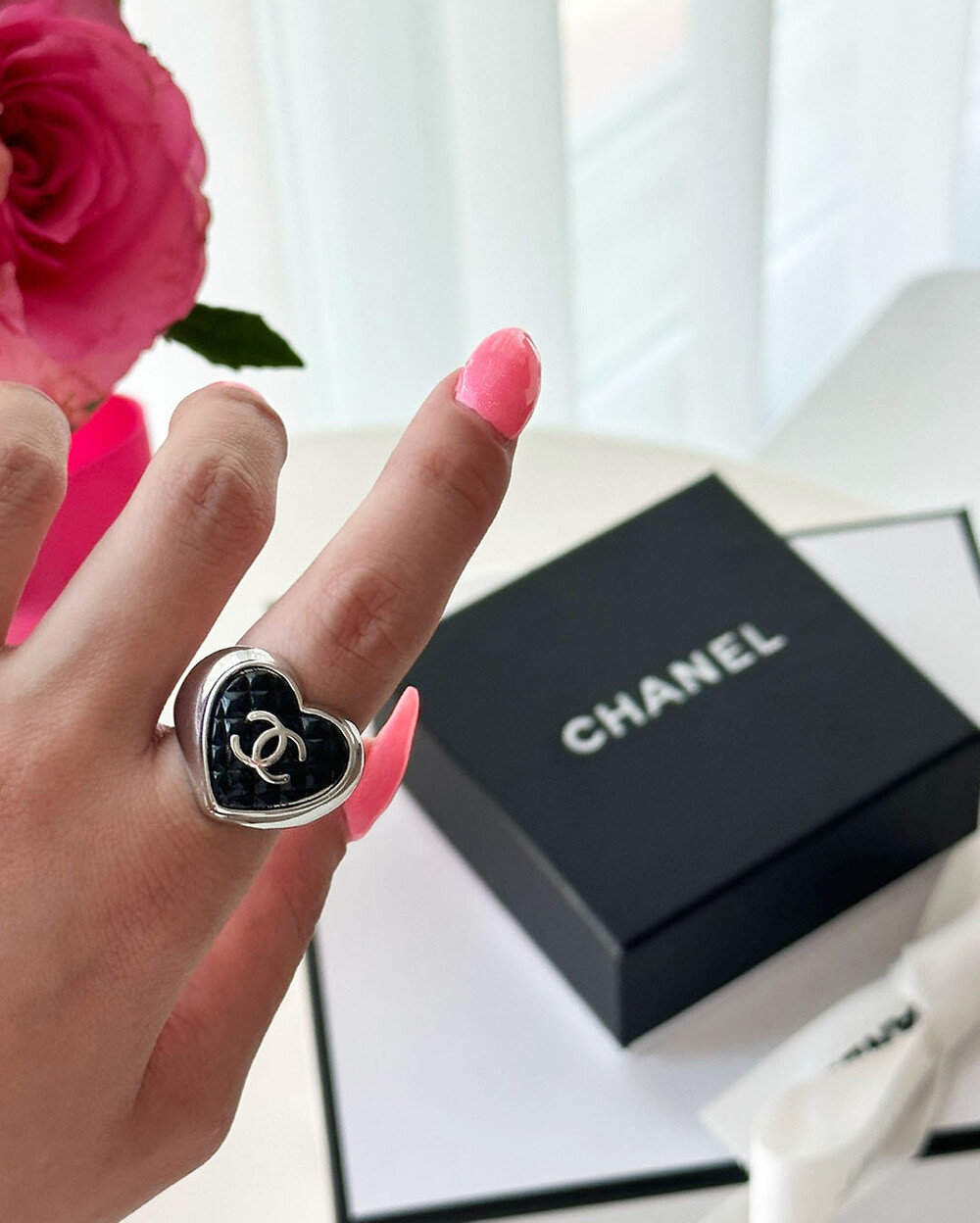 러블리한 하트쉐입에 cc로고와 퀼팅으로 포인트 주어