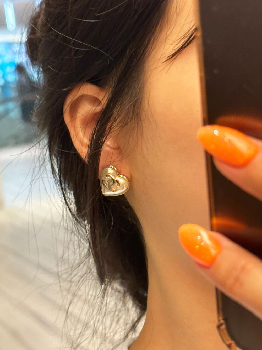 샤 글로시 하트 이어링 925은침