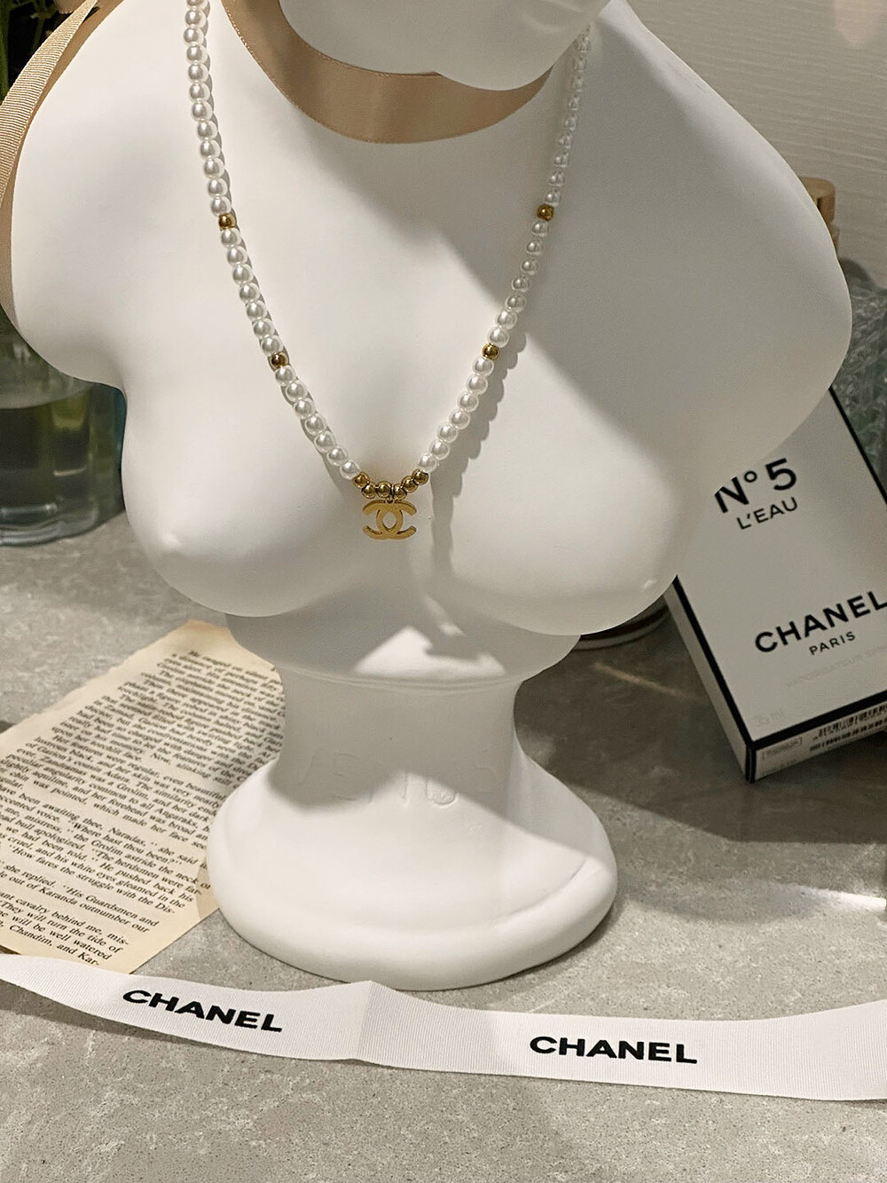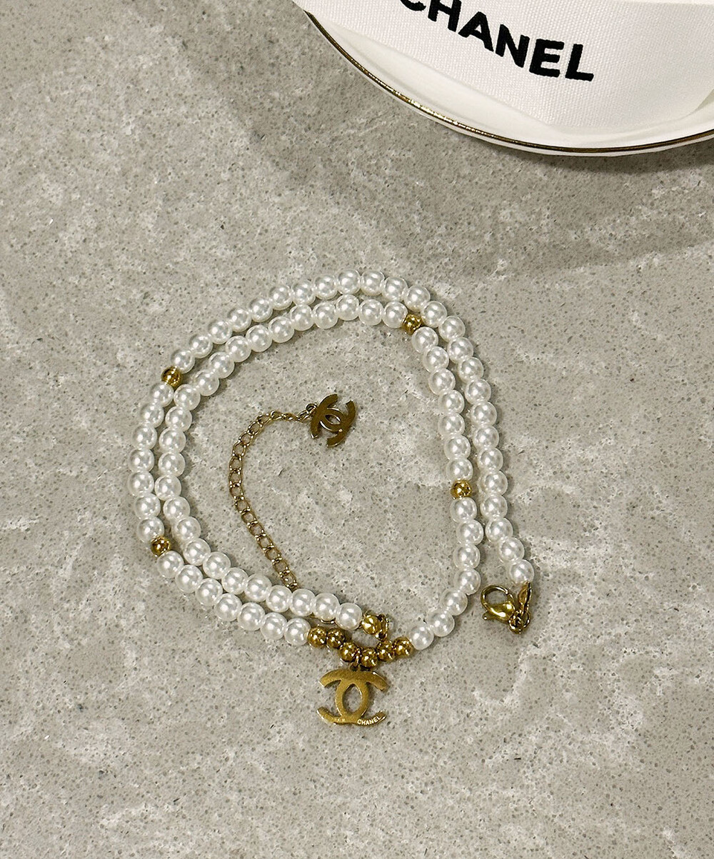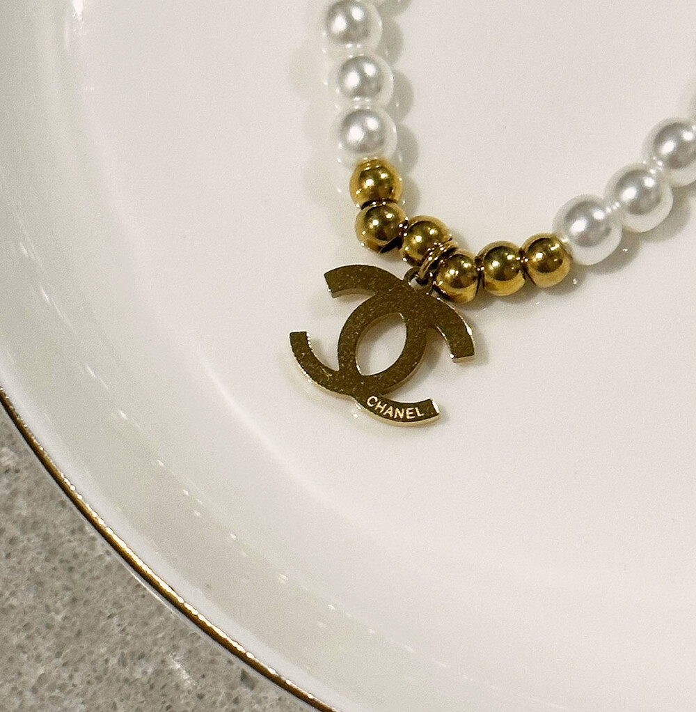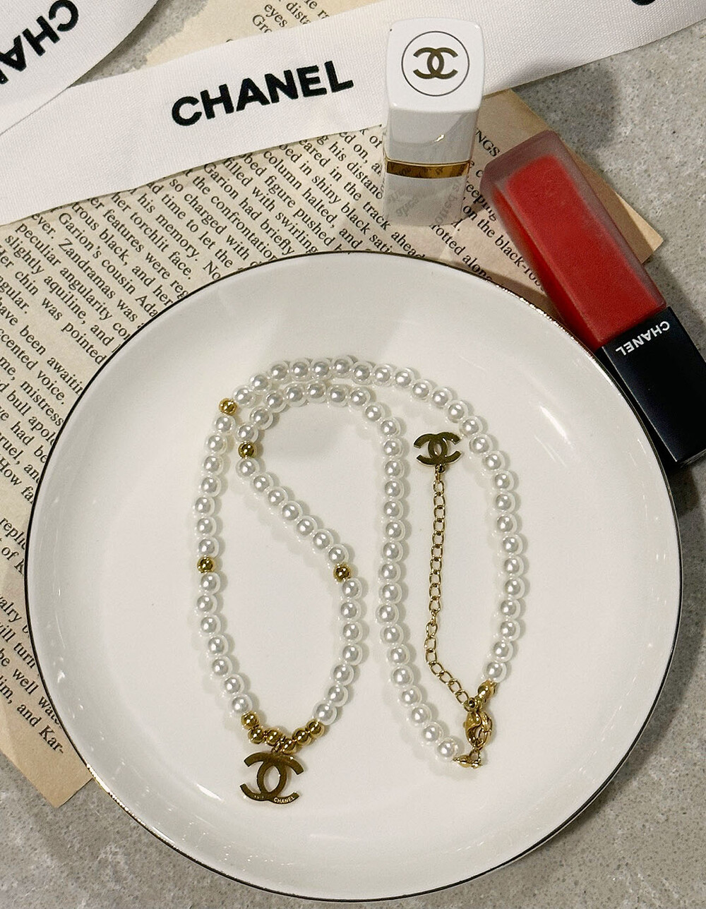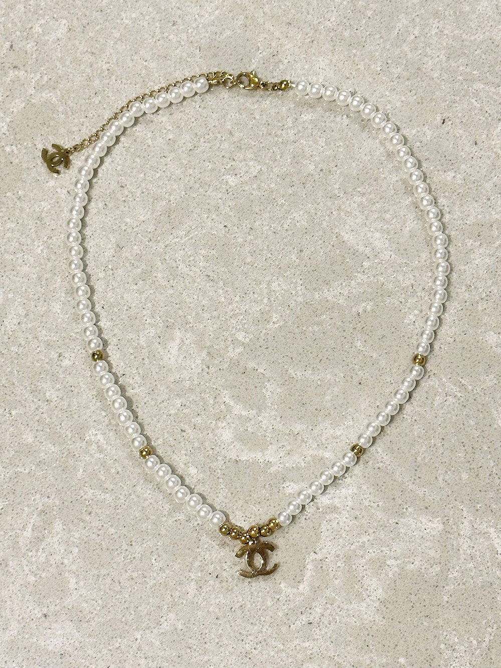 CC로고가 돋보이는 클래식한 진주목걸이에요.