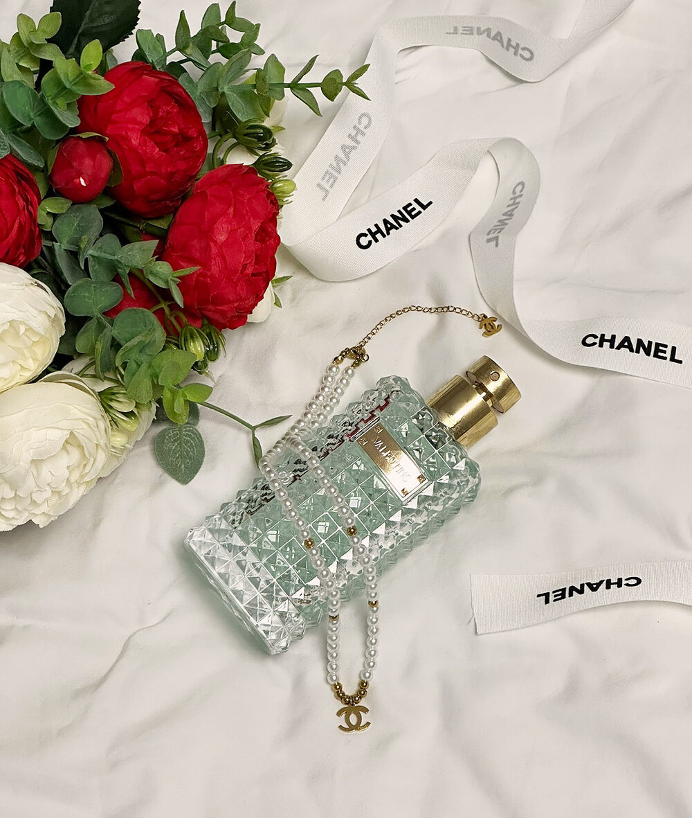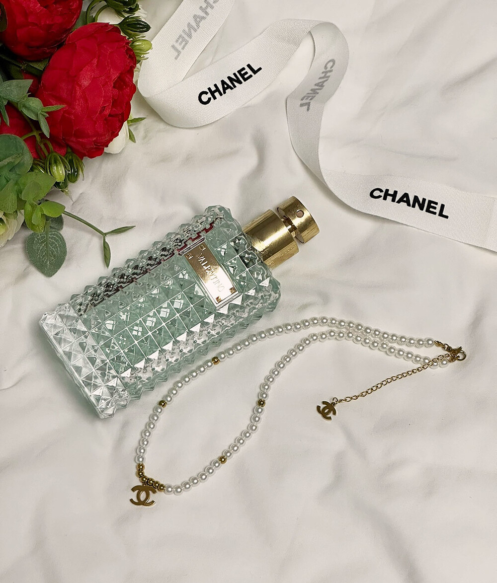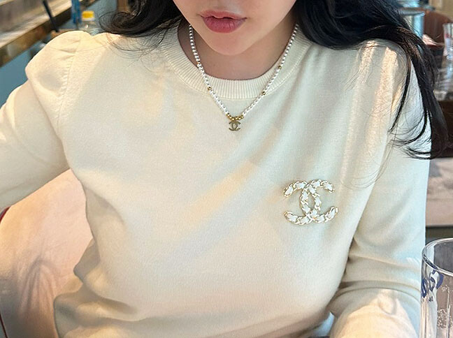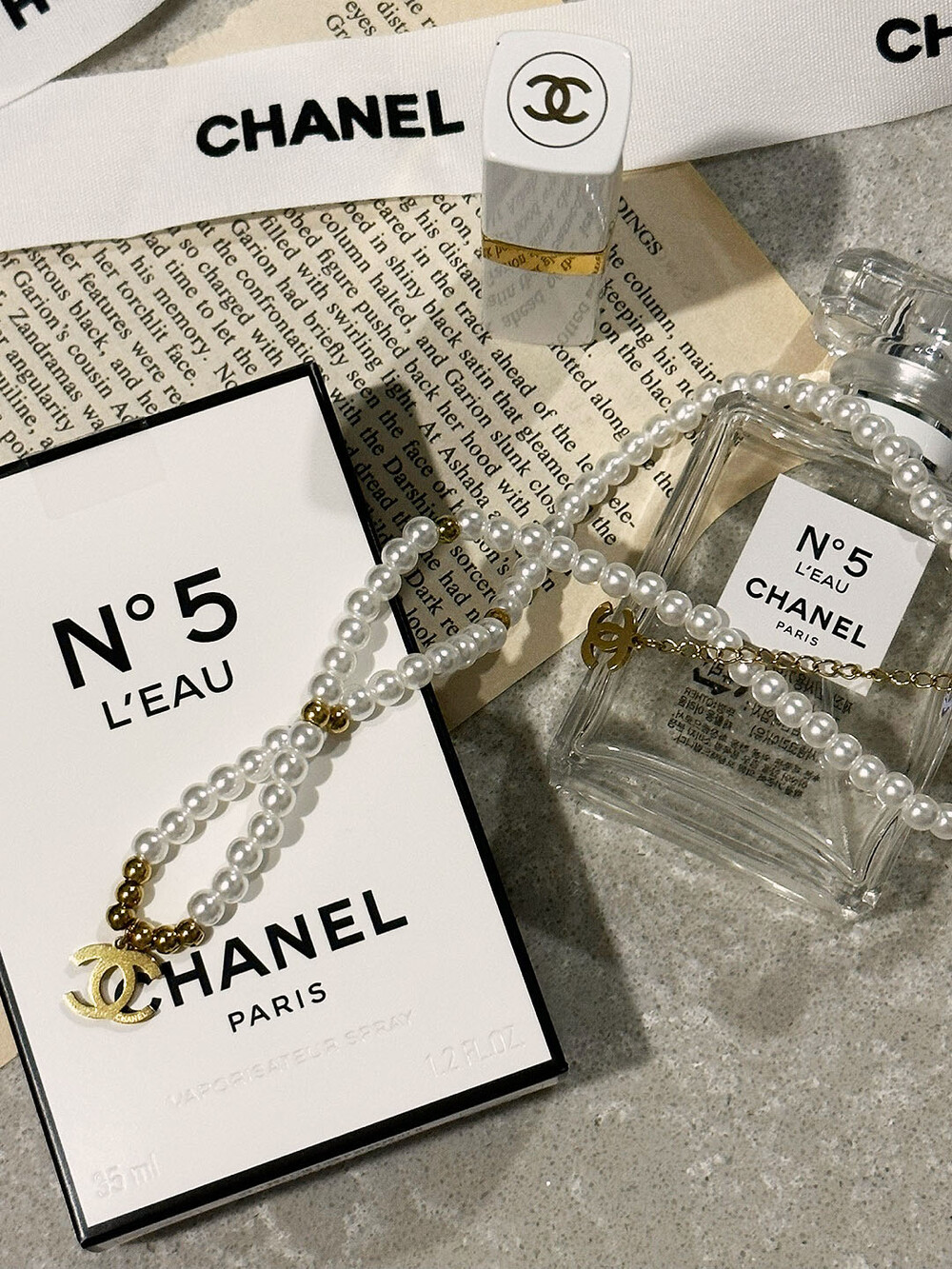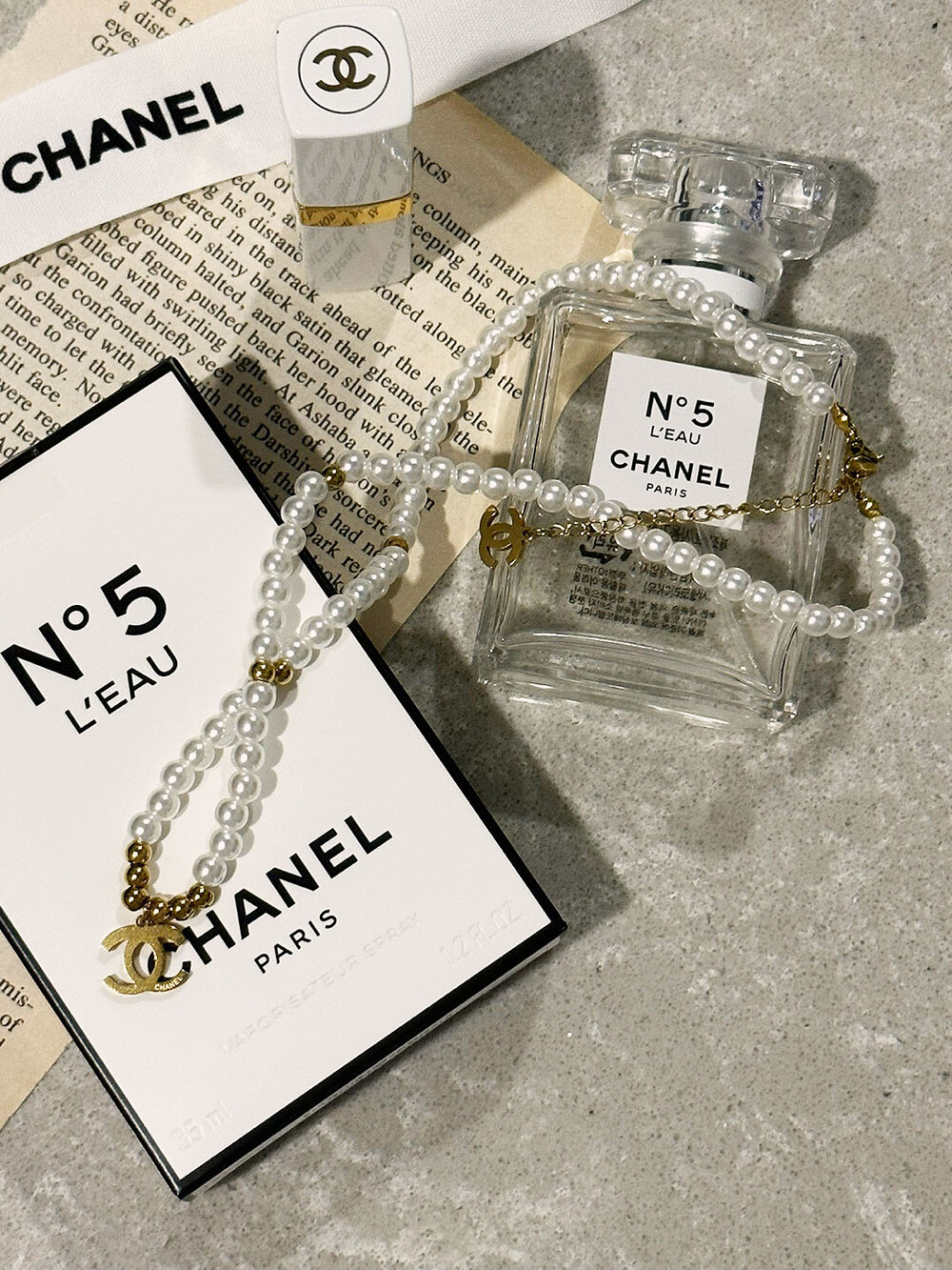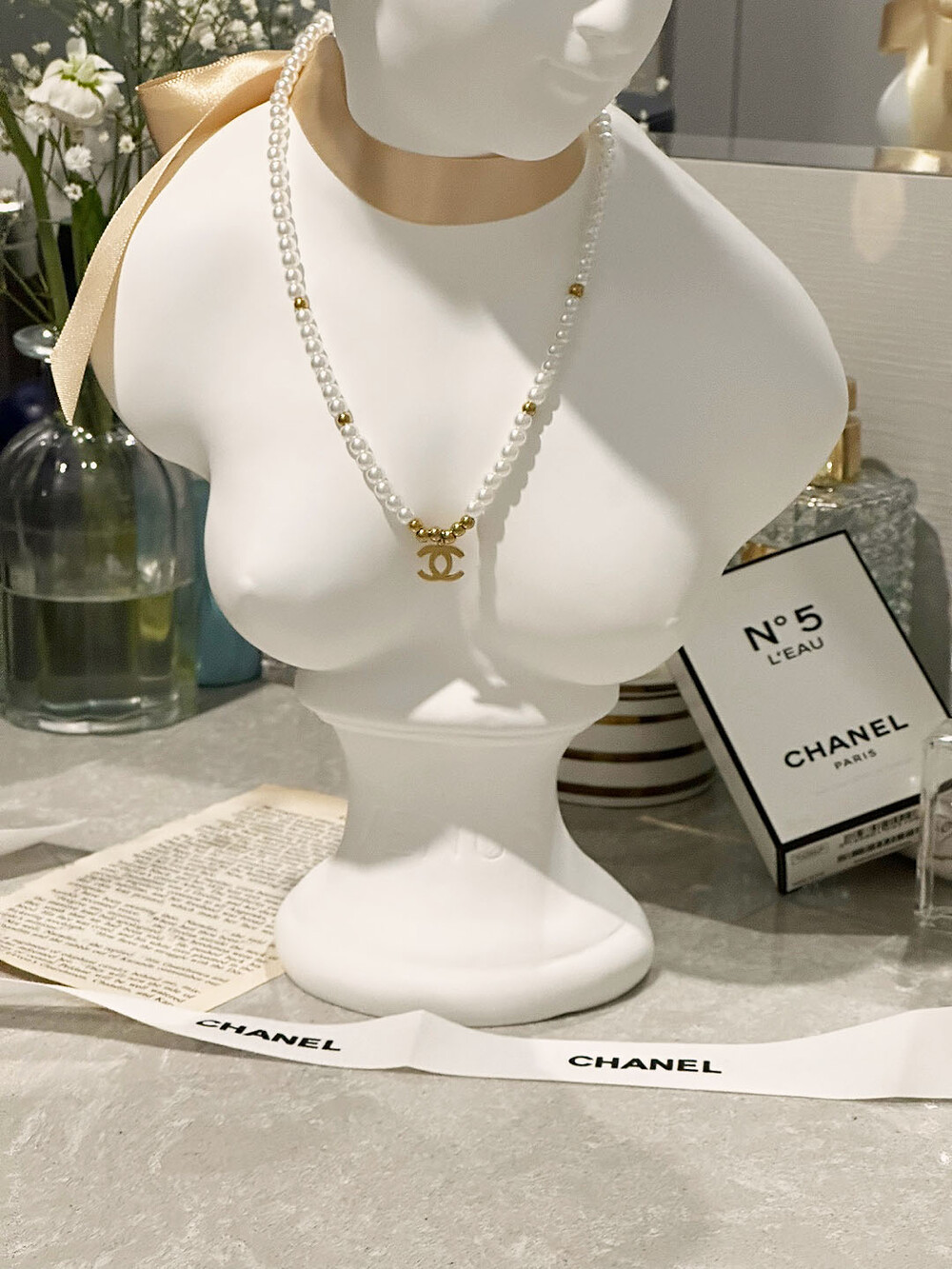 CC로고가 돋보이는 클래식한 진주목걸이에요.