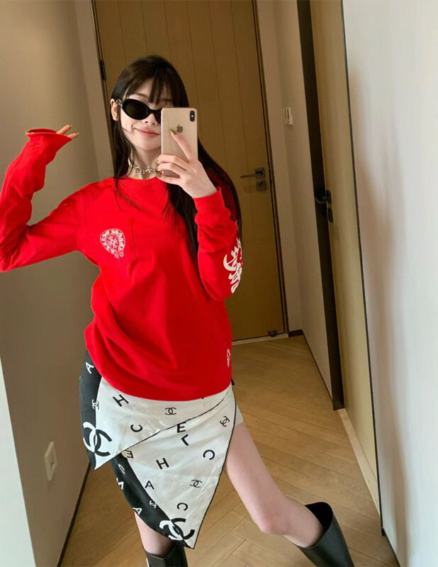 크롬 스크롤 라벨 레터링 티셔츠