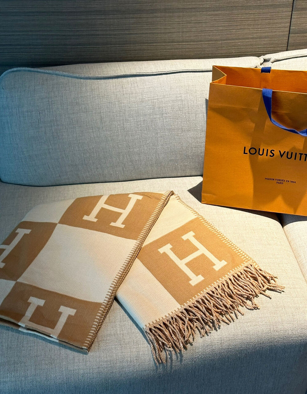 H영문의 격자 패턴이 스테디하면서 클래식한 느낌인데다
