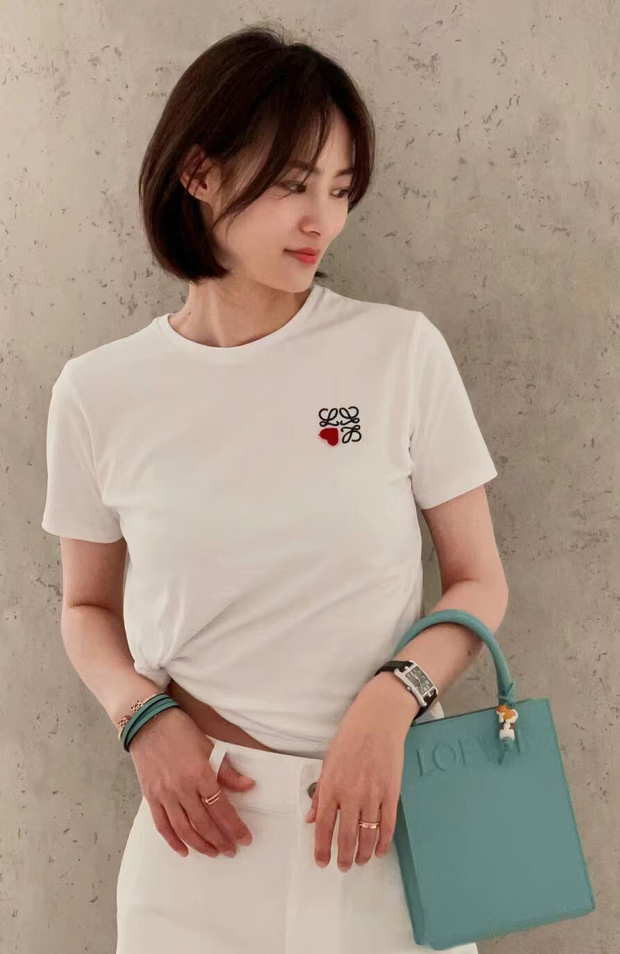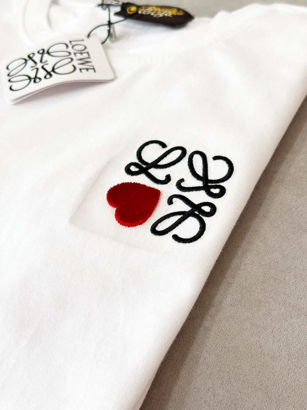 로에 하트 자수 티셔츠