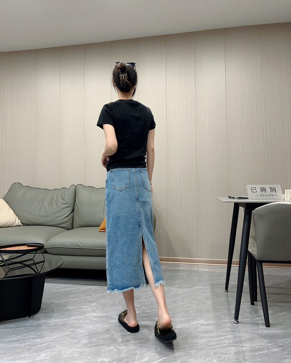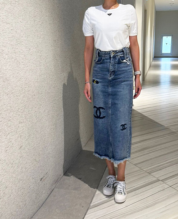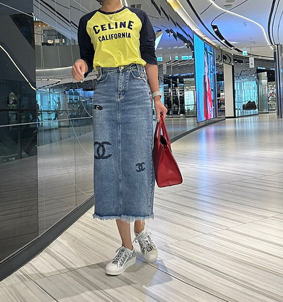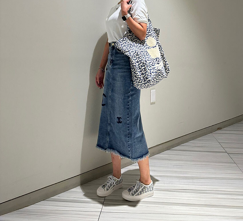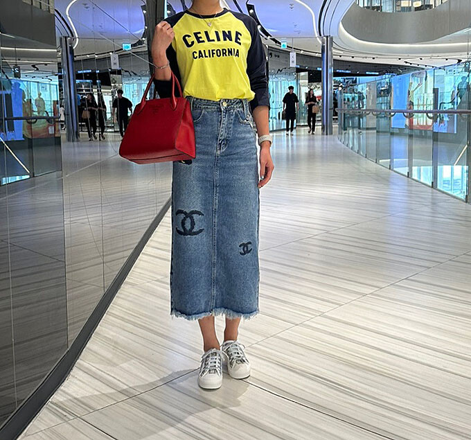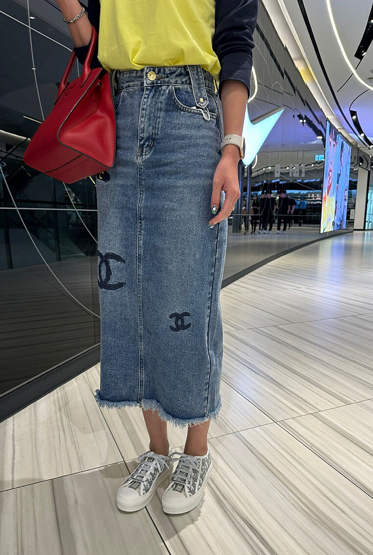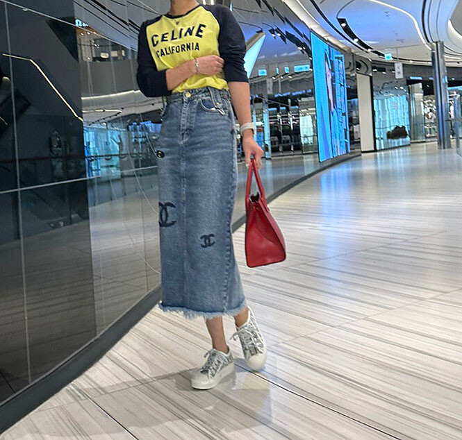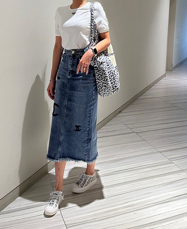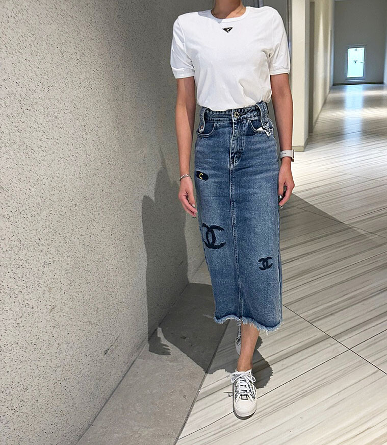 밑단 헤짐 디테일과 군데군데 로고 디테일이 캐주얼함을 더해주고