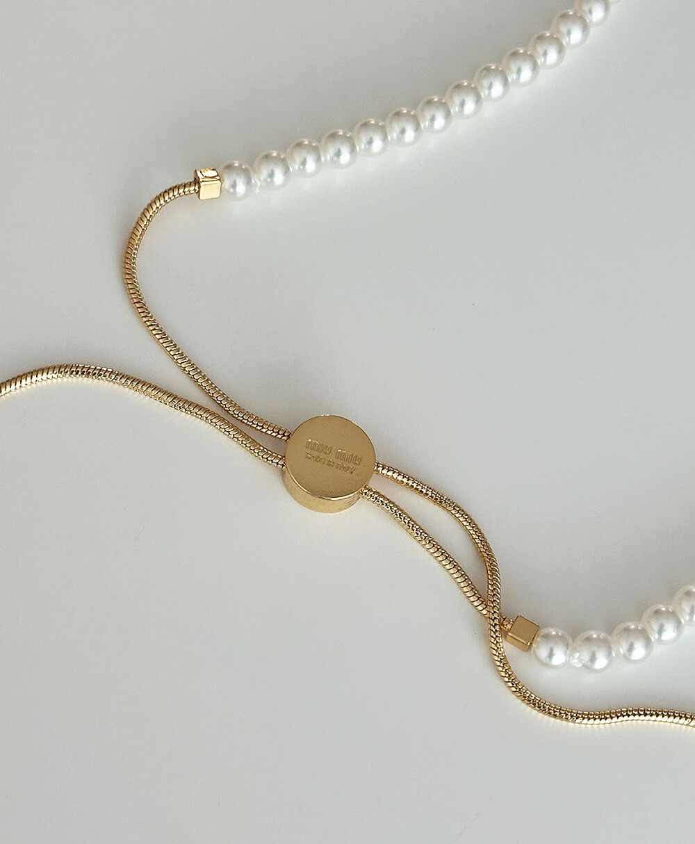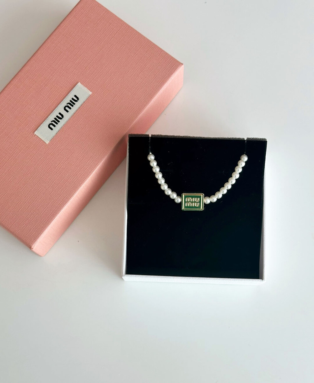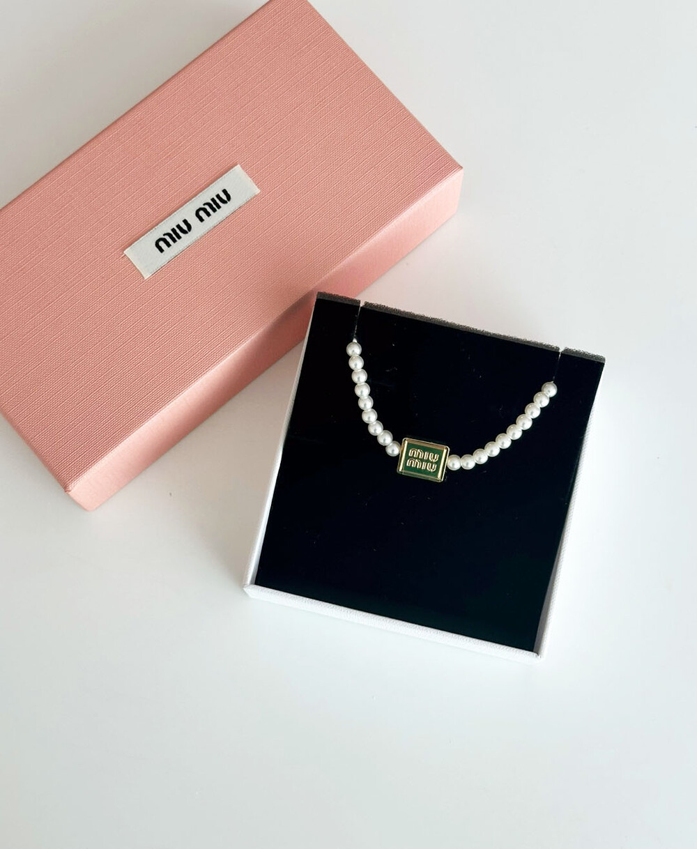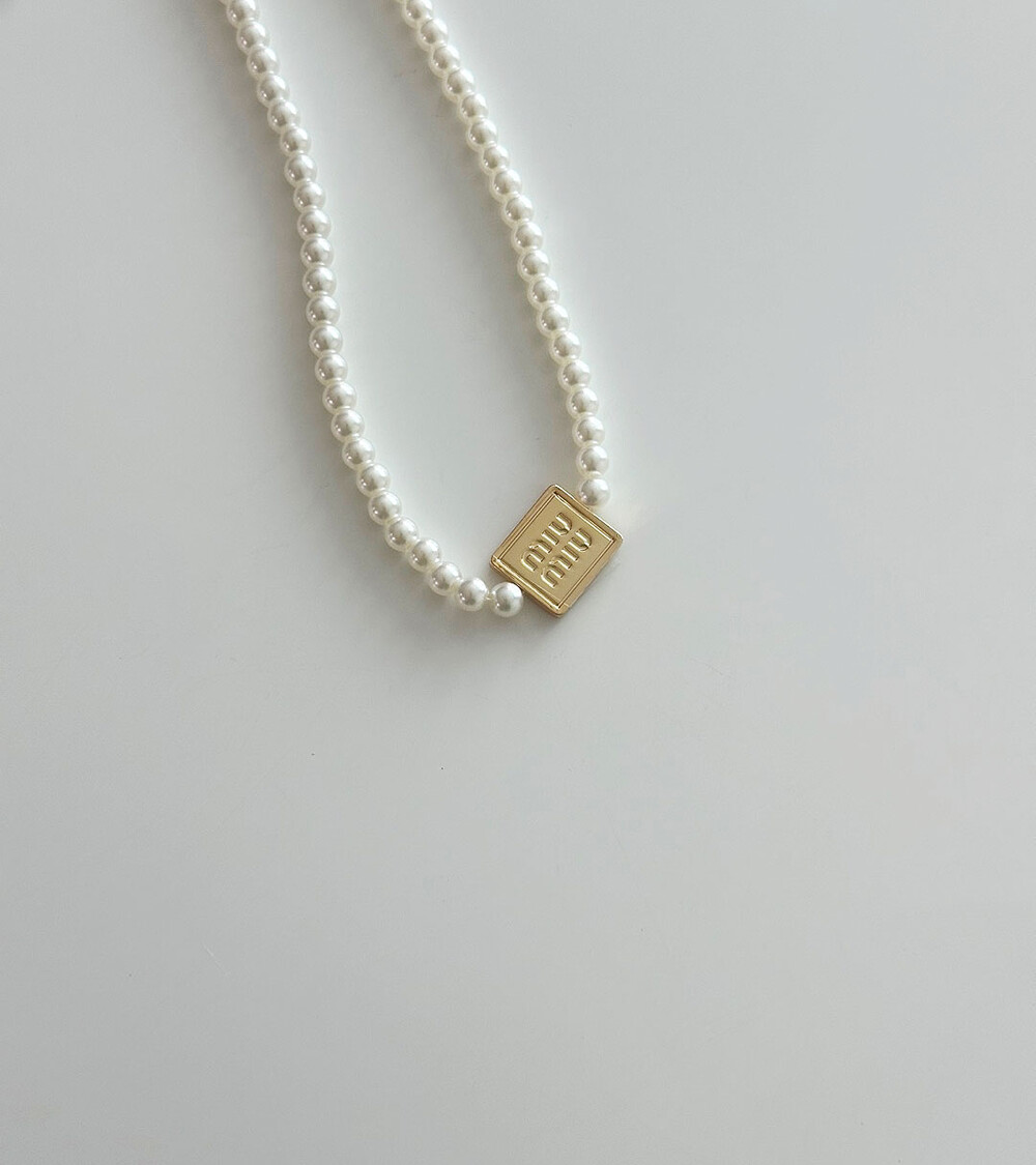 miu버클 스퀘어 진주 네크리스