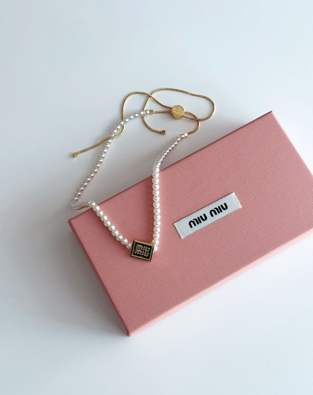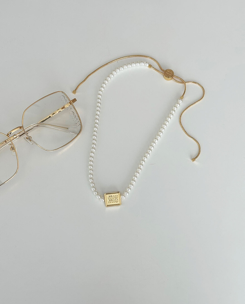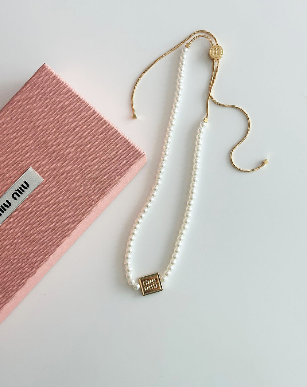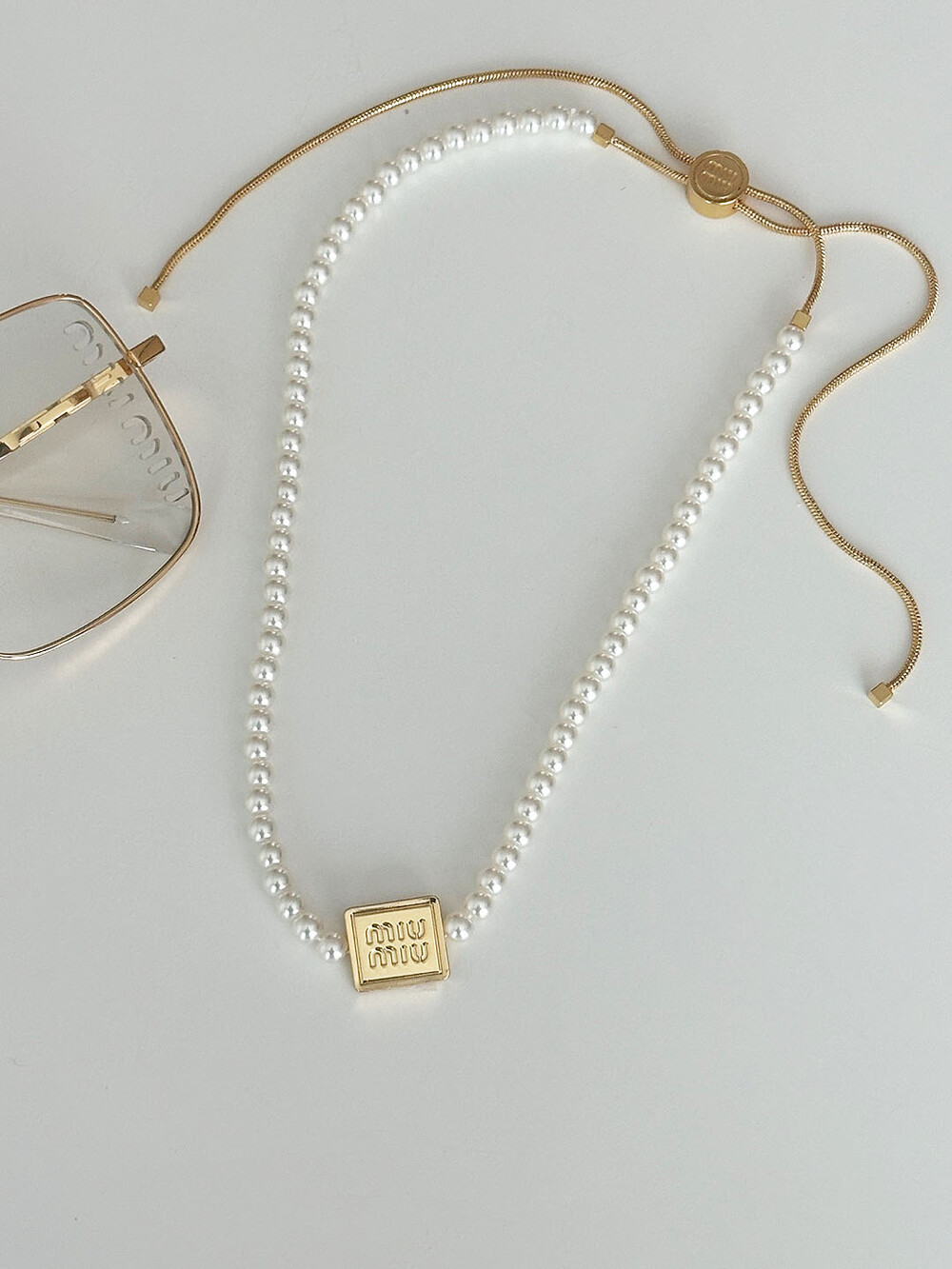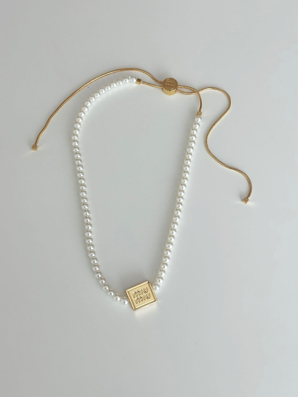 miu버클 스퀘어 진주 네크리스