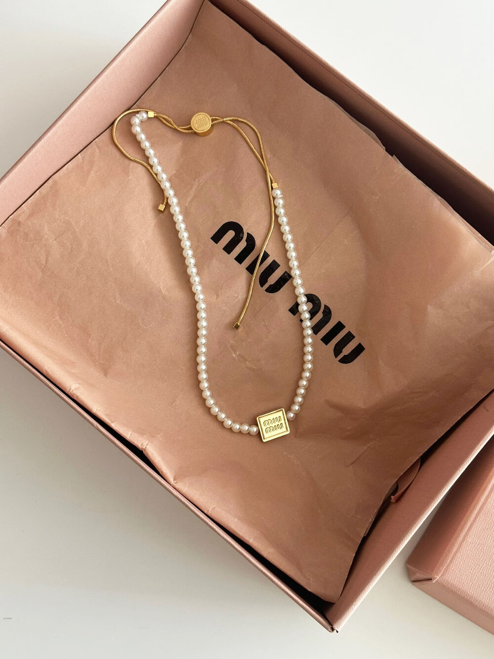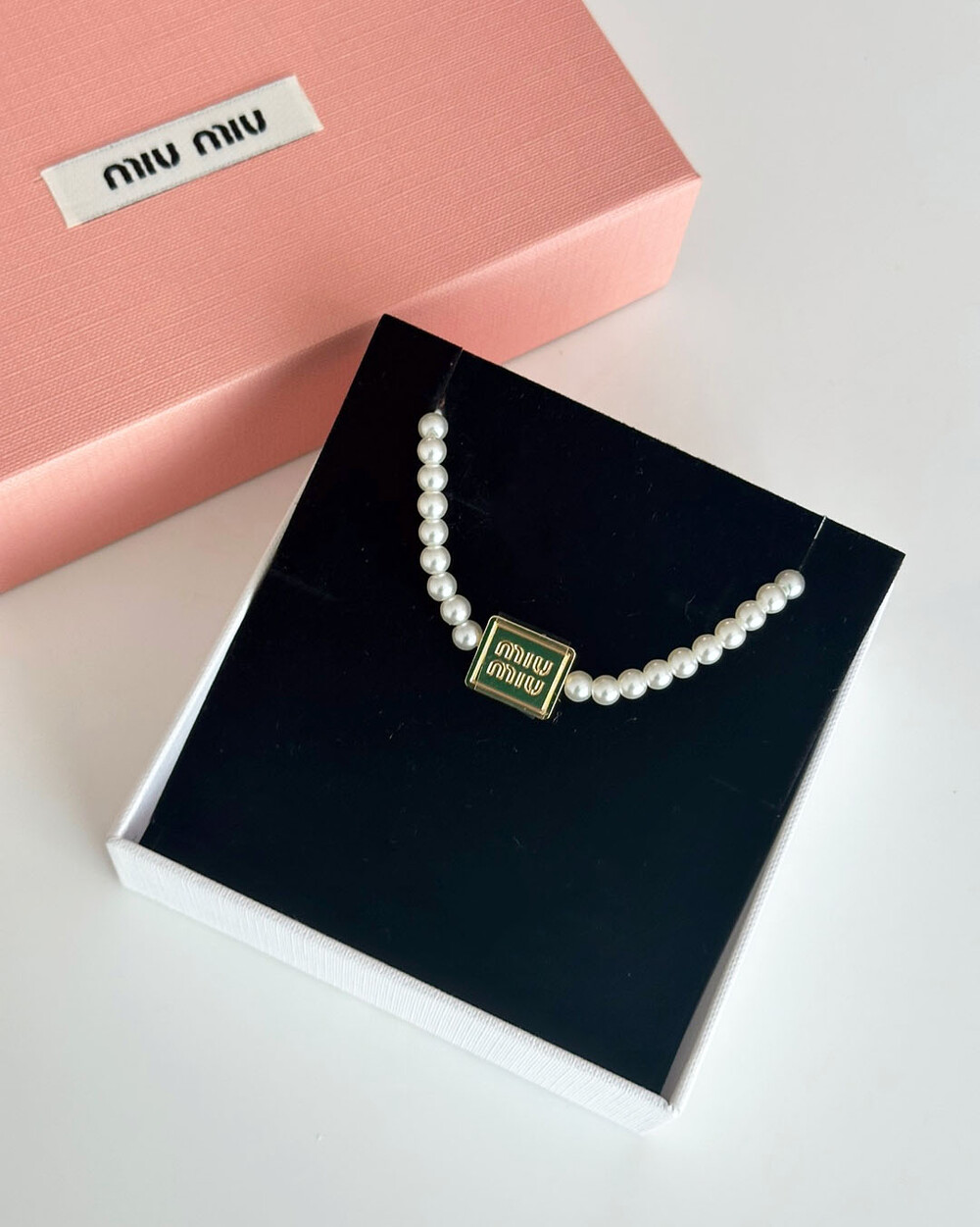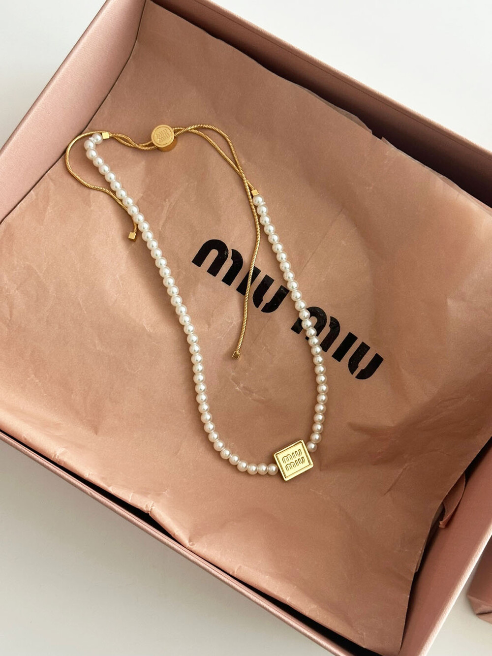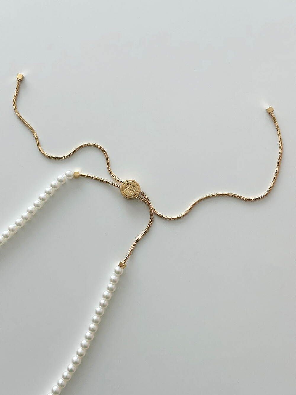 miu버클 스퀘어 진주 네크리스