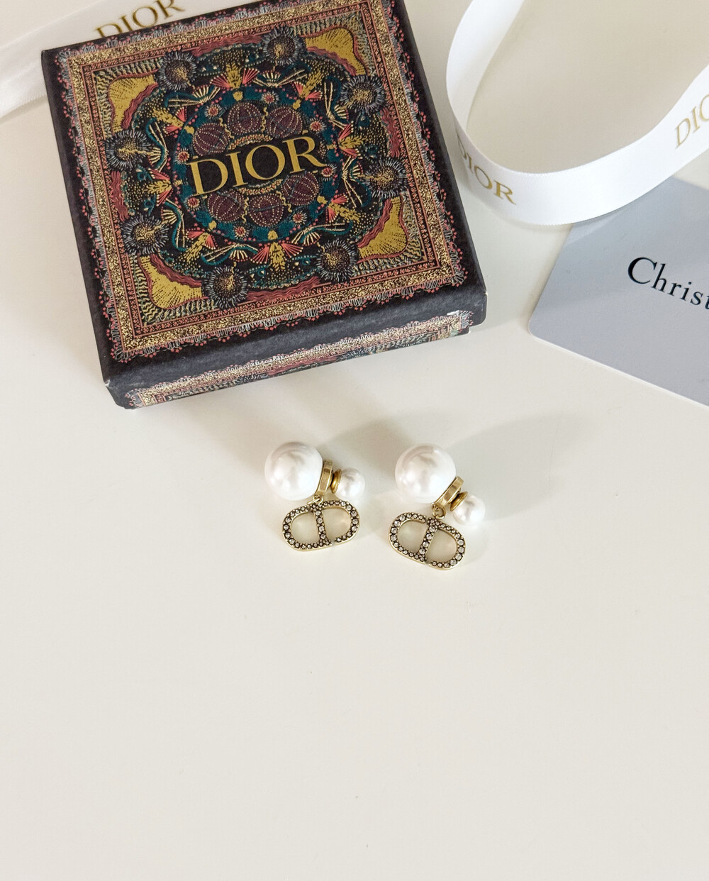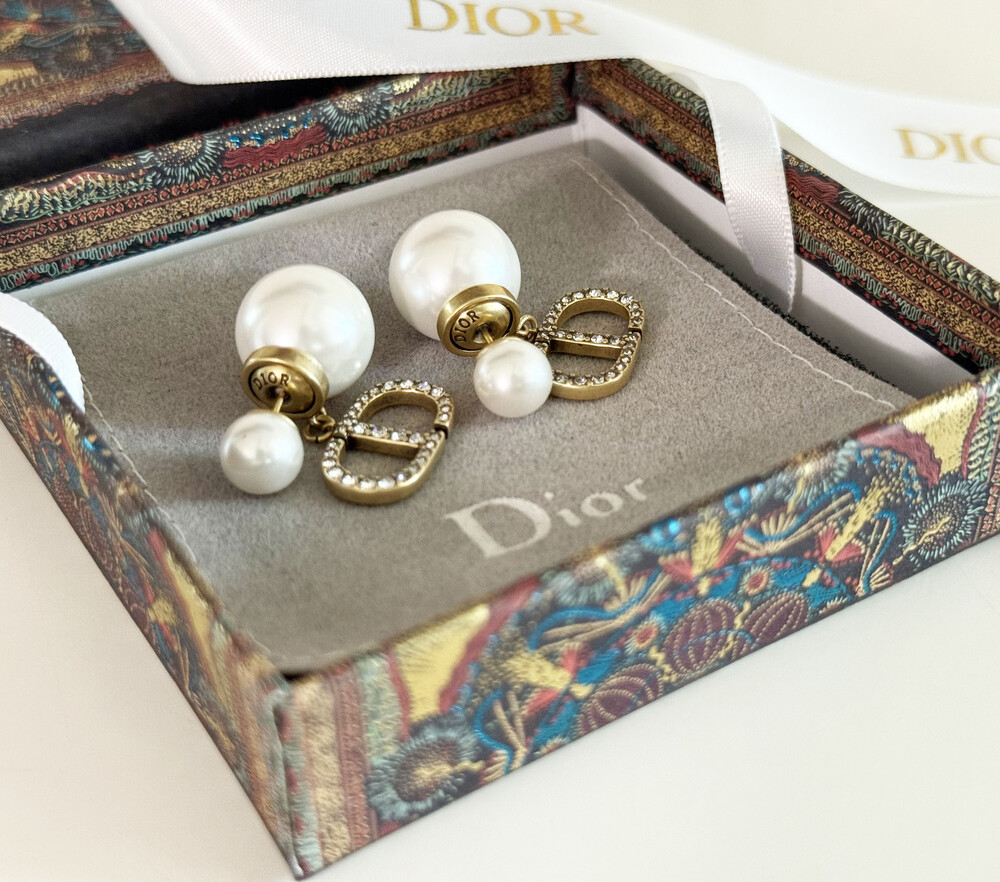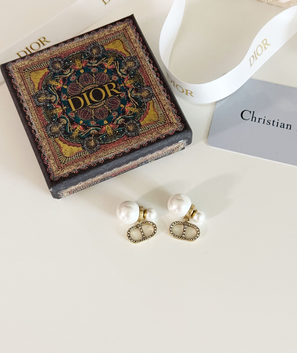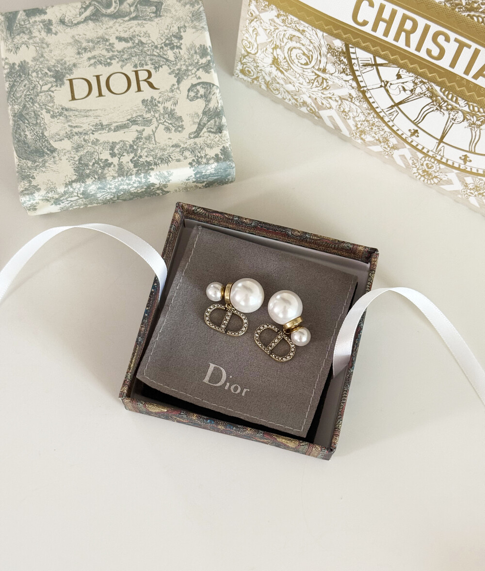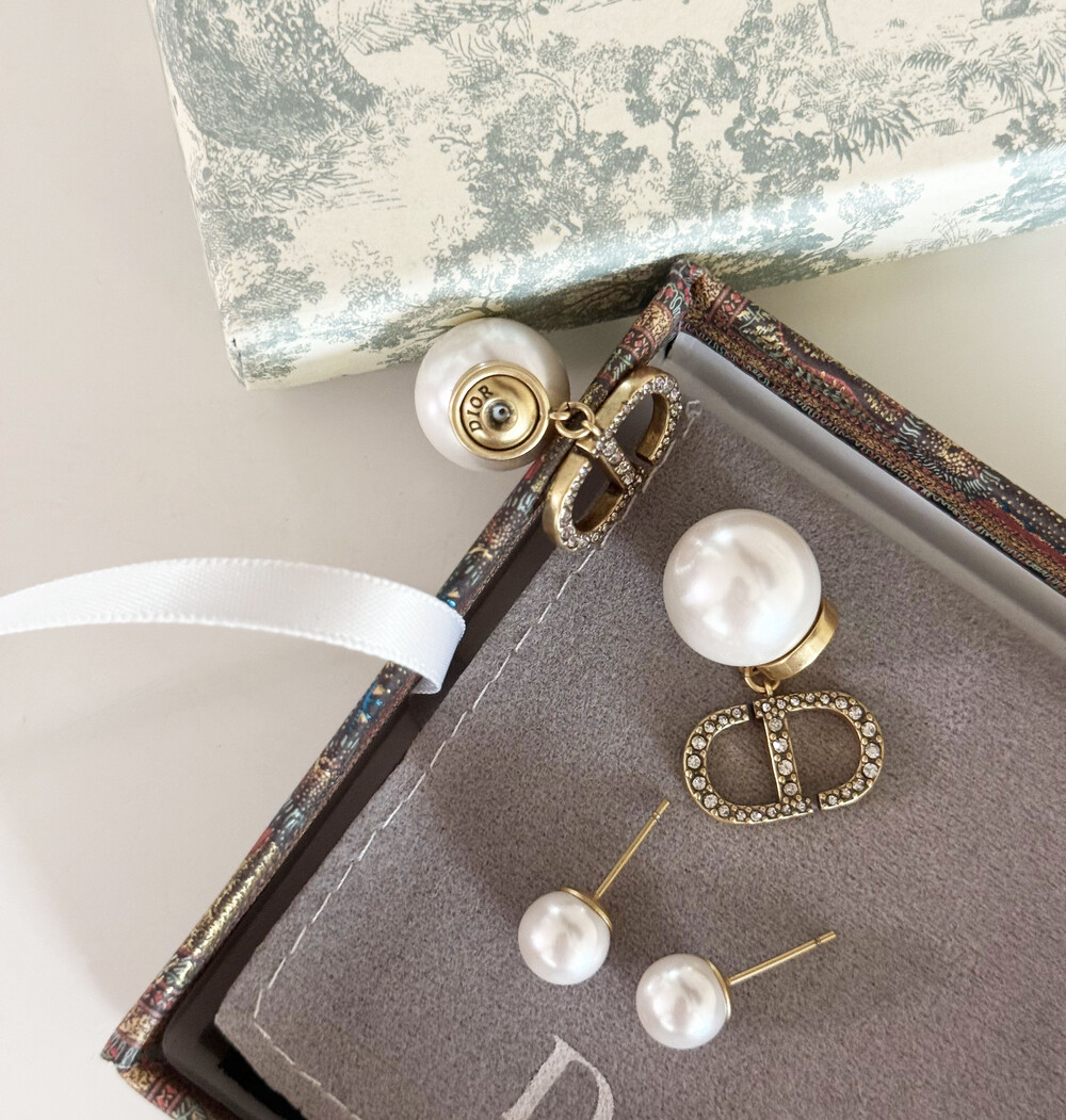cd스톤 더블 진주 이어링