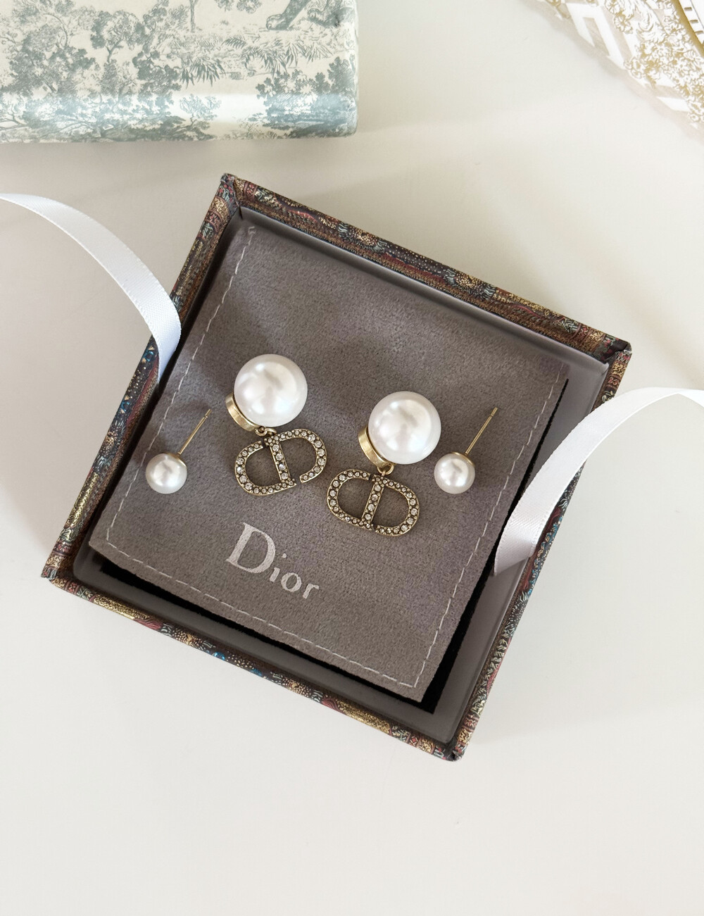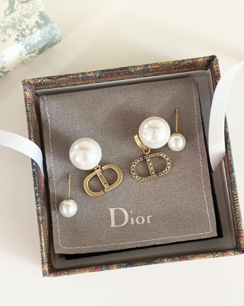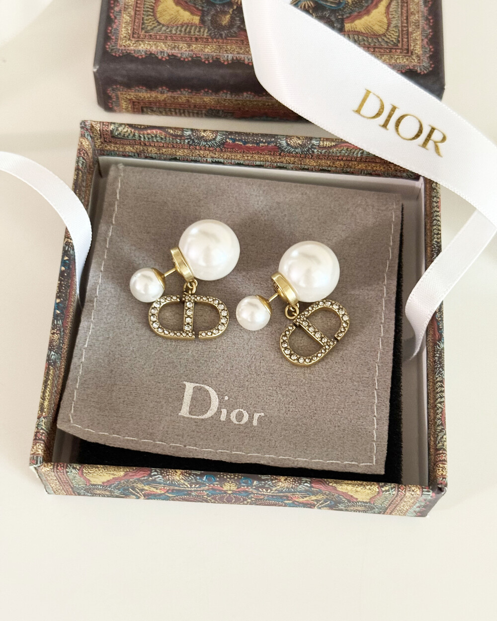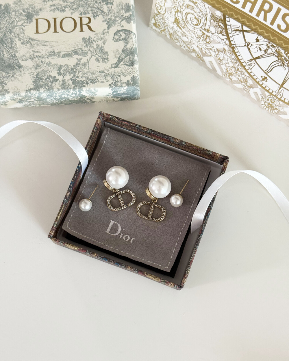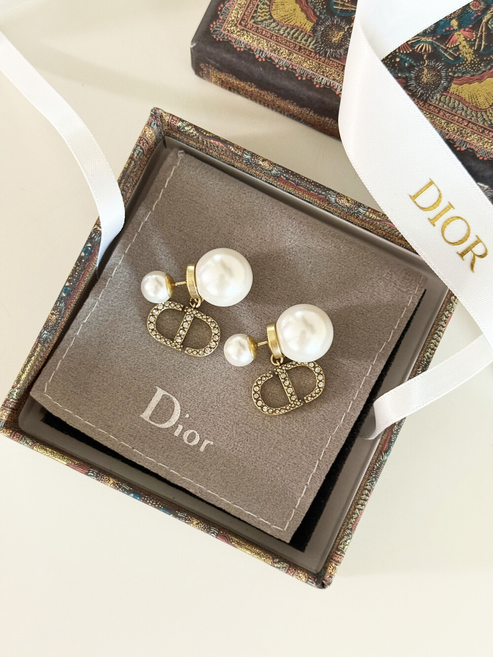 cd스톤 더블 진주 이어링