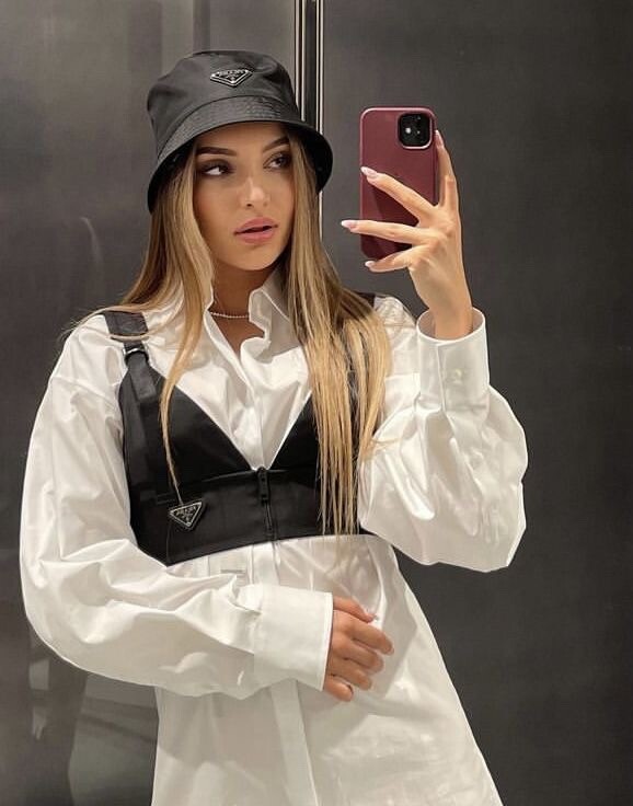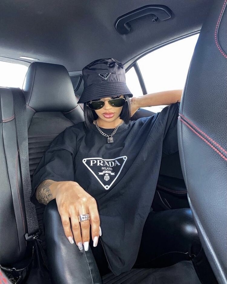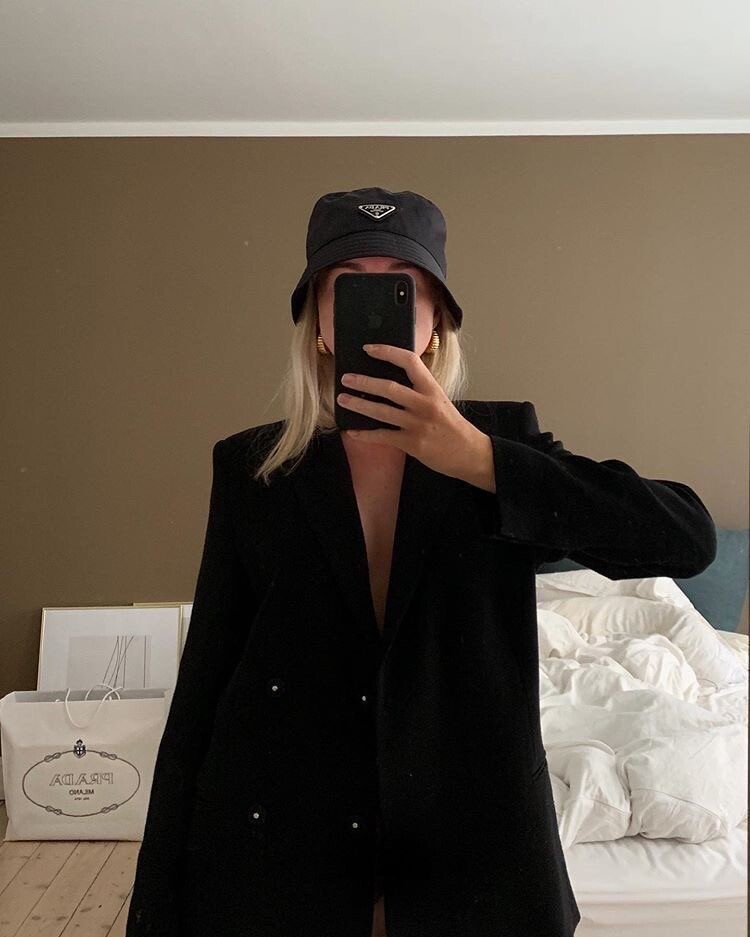 스타일리쉬하게 스타일링하기 좋은 pra버킷햇이에요:)